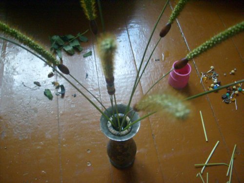 Собираем растительный материал для букета. Для небольшой вазы нам хватит десяти травинок.