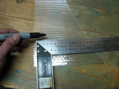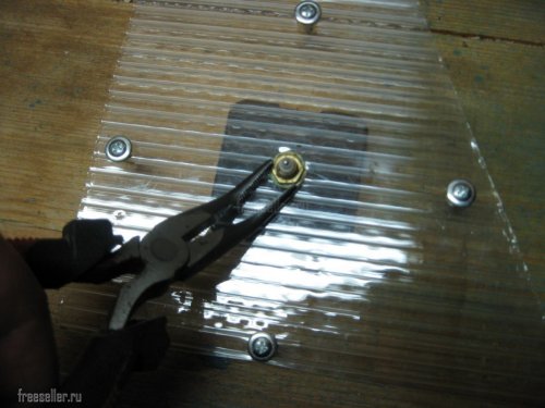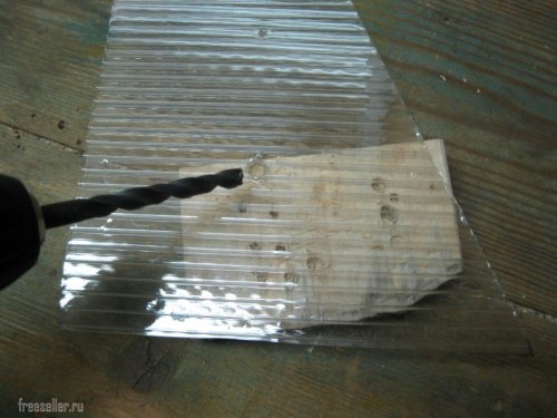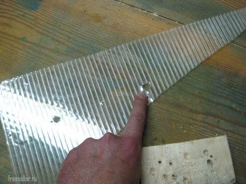 Сначала я произвел разметку куска поликарбоната и наколол центры будущих отверстий шилом.