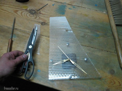 После этого я вставил батарейку, а кроме того, решил немного укоротить корпус часов, отрезав сверху небольшой кусок поликарбоната.