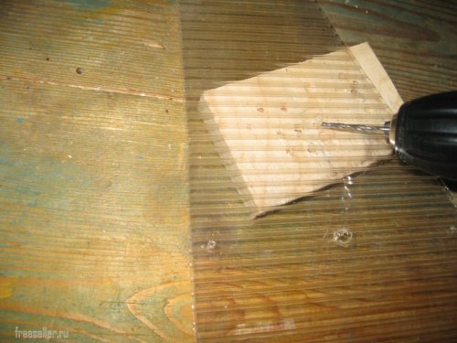 А затем просверлил в центре отверстие диаметром 8 мм, для крепления часового механизма, а по четырем сторонам, отверстия диаметром 3 мм, для закручивания шурупов.