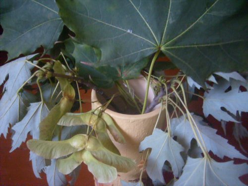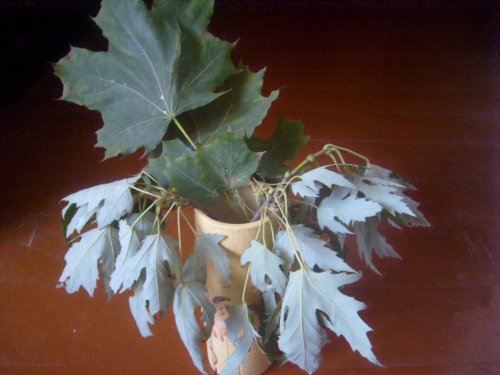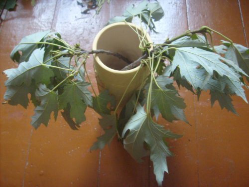 Осенние букеты, несмотря на скудость растительного материала, могут быть красивыми и оригинальными. Сегодня мы составим скромный букет из кленовых листьев. Самое главное условие создания красивого букета - отказ от условностей. Но правила, всё же, есть. Красота это гармония. Гармонично сочетаются между собой компоненты либо явно схожие, либо очень разные. Для нашего букета мы принесли из леса зелёные кленовые ветки. Но они и зелёные, и кленовые по-разному. Разновидностей клёна и оттенков зелёного достаточно много.
