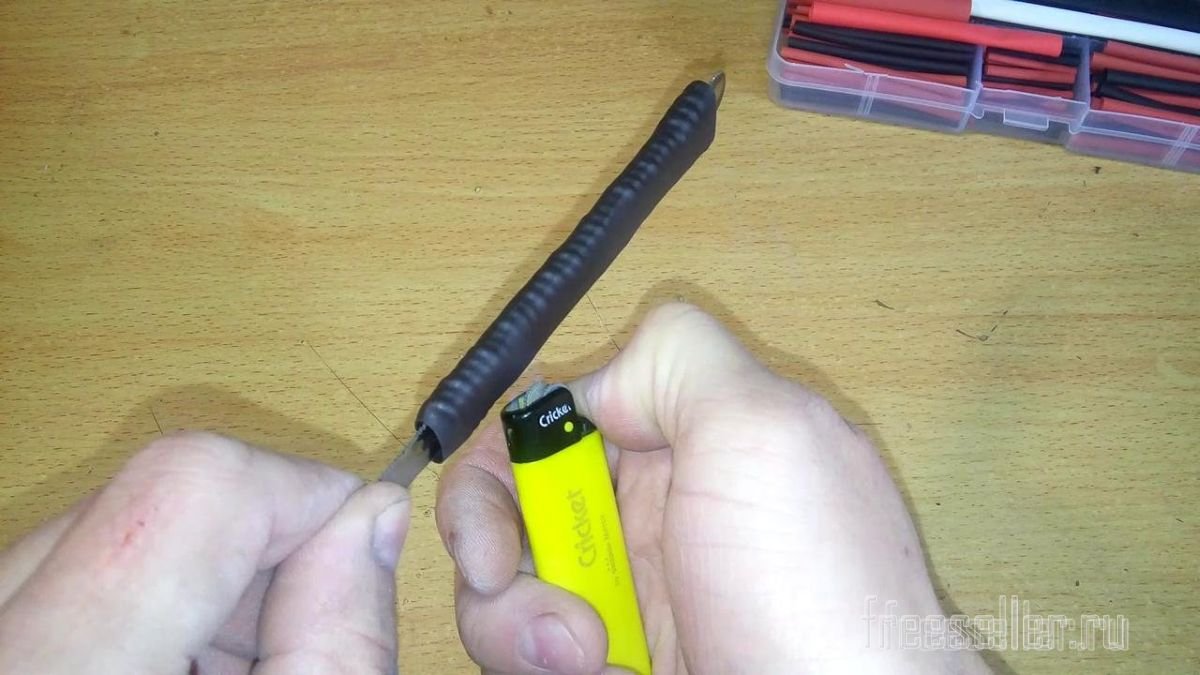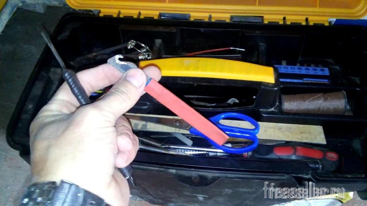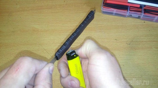 Далее для придания более эстетичного вида одеваем термоусадочную трубку и хорошенько прогреваем зажигалкой, если нет термоусадки подойдет и изолента.