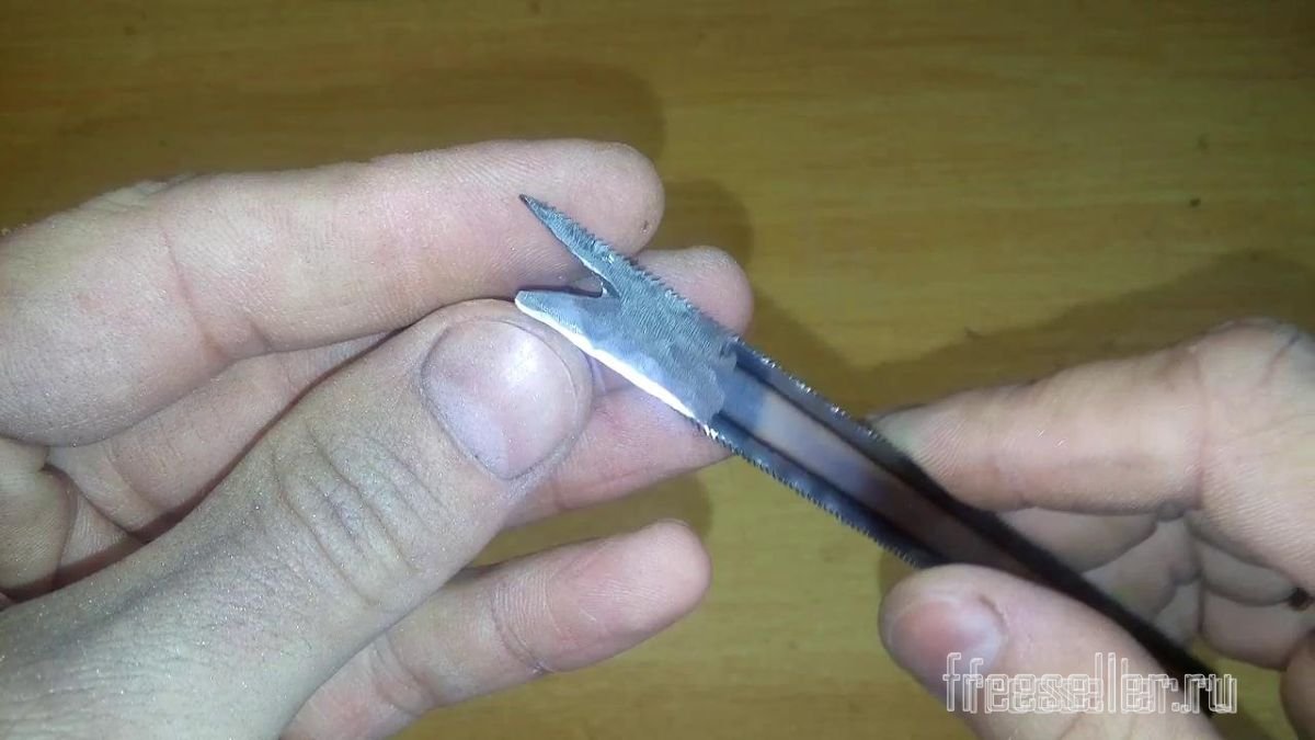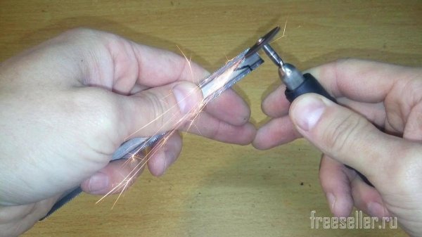 Когда по шаблону все будет вырезано, так же при помощи бормашинки затачиваем внутреннюю и с одной стороны внешнюю сторону резака. Вместо бомашинки можно использовать маленький напильник. В итоге после заточки должно получится следующее, как на фото ниже.
