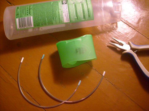 Смастерить такую подставку можно из фрагмента пластика и так называемых "косточек" от дамского белья.