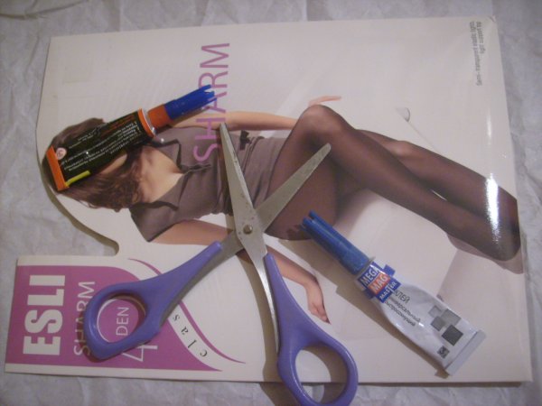 Мы вместо картона использовали готовую форму - вкладыш из упаковки колготок. Там и картинка есть, и бумага сверху лощёная.