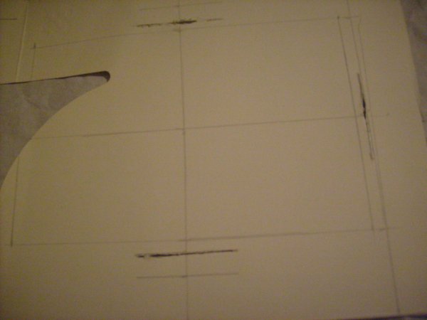 На обратной стороне передней части точно по центру вычерчиваем прямоугольник размером 10 см на 15 см.