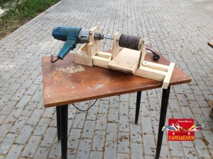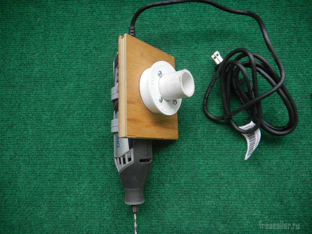 Подготавливаем Дремел. Для фиксации используем площадку из фанеры, крепим к ней Дремел на 2 металлических хомута.