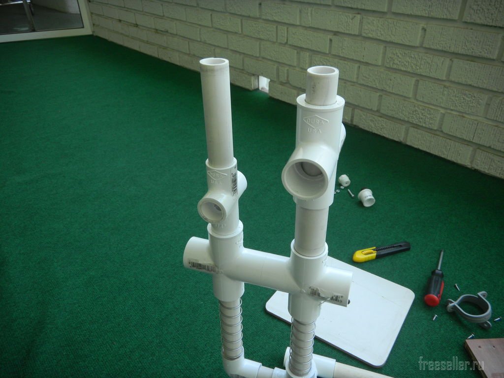 Трубы и фитинги из PVC -довольно популярный материал на западе. но в нашей стране широкого применения не получили. Собирается методом склейке.