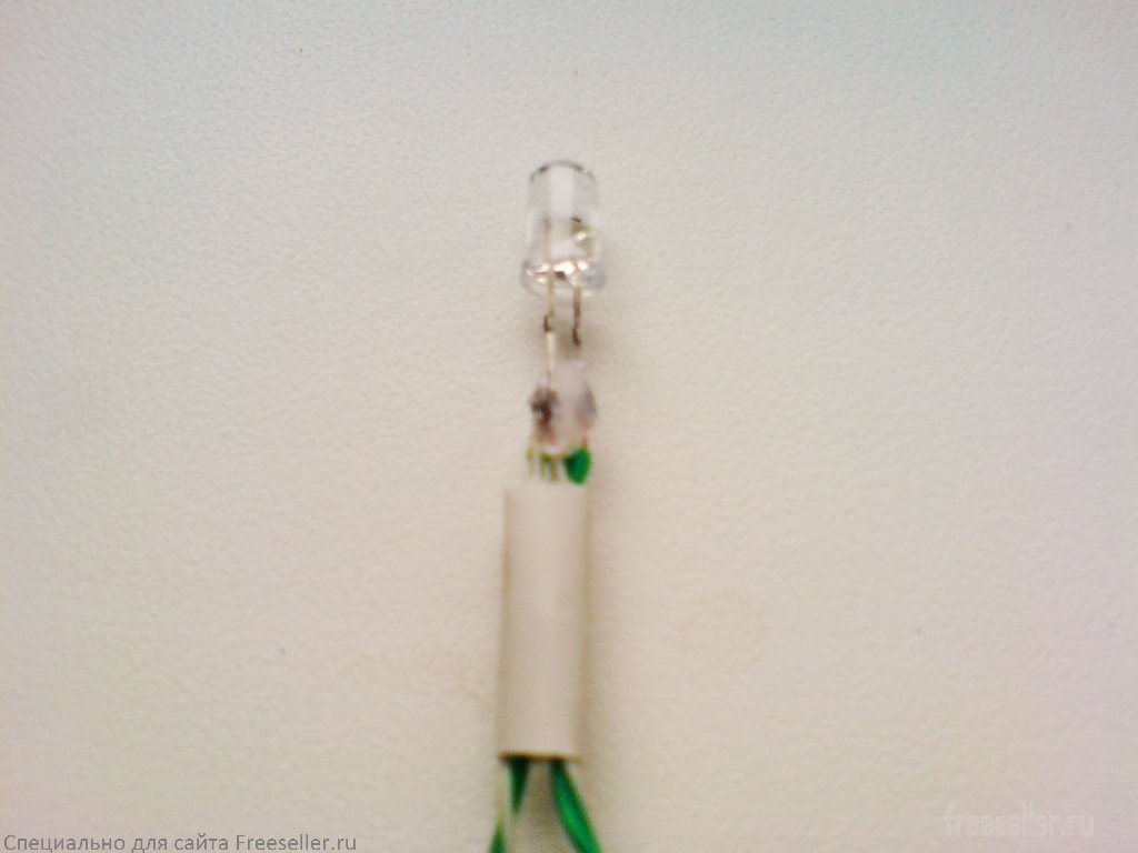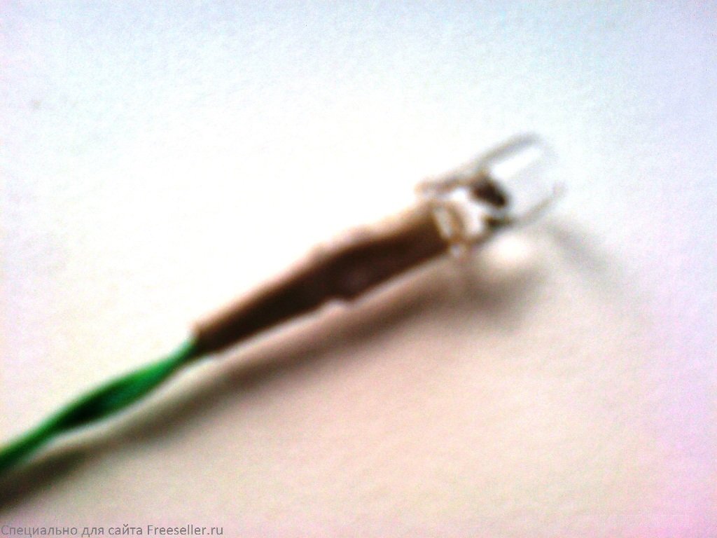 Припаиваем светодиод, оголённые контакты изолируем термоклеем.