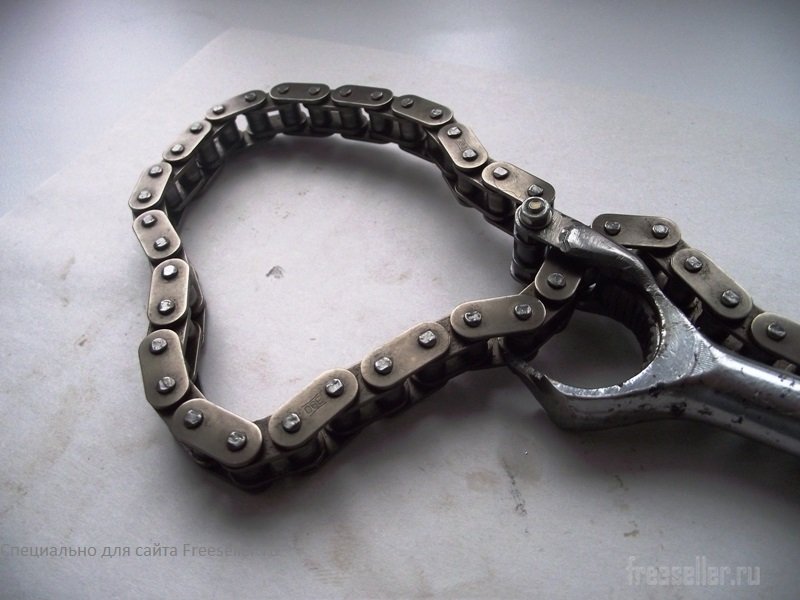 Для цепного съёмника разбираем цепь. Можно спилить штифт и выбить его, но я использовал выжимку цепей, которую так же делал сам.