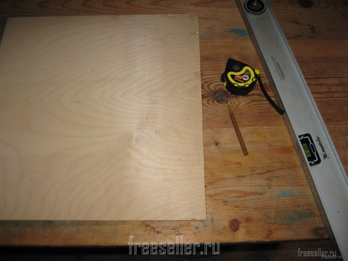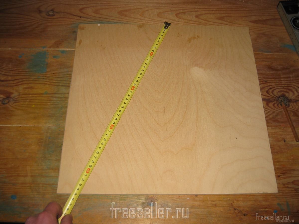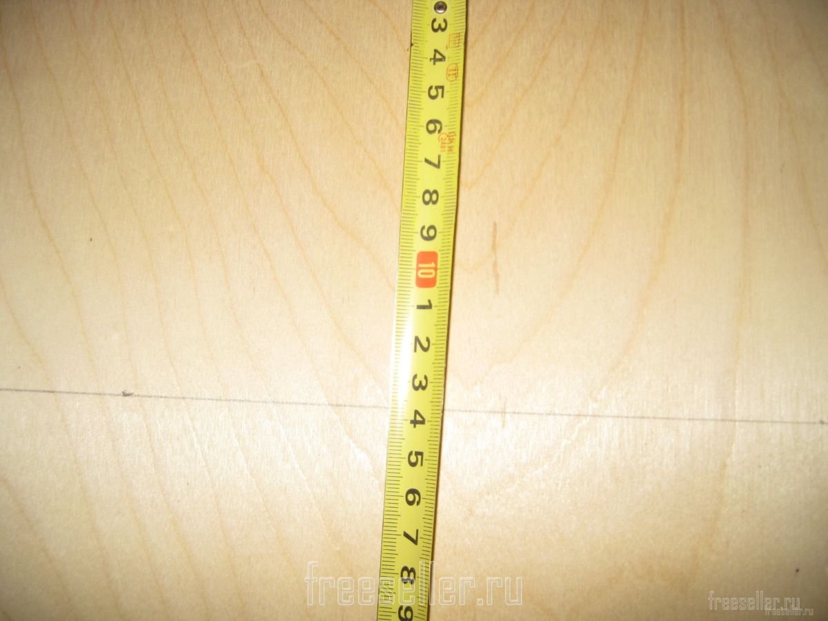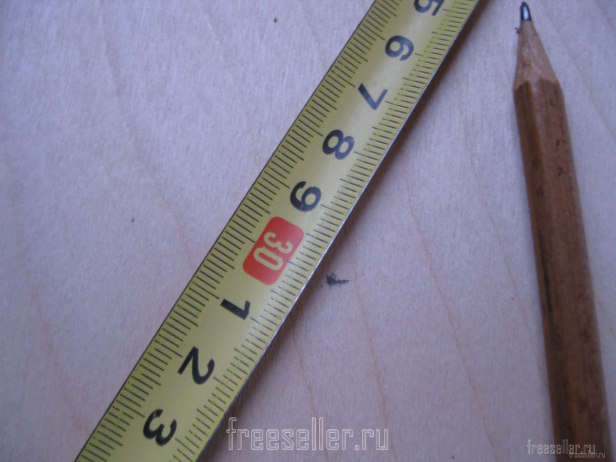 Ну, а теперь, нам остается только сделать отметки карандашом. Сначала делаем на фанерном листе отметку напротив числа 15 см, на рулетке.