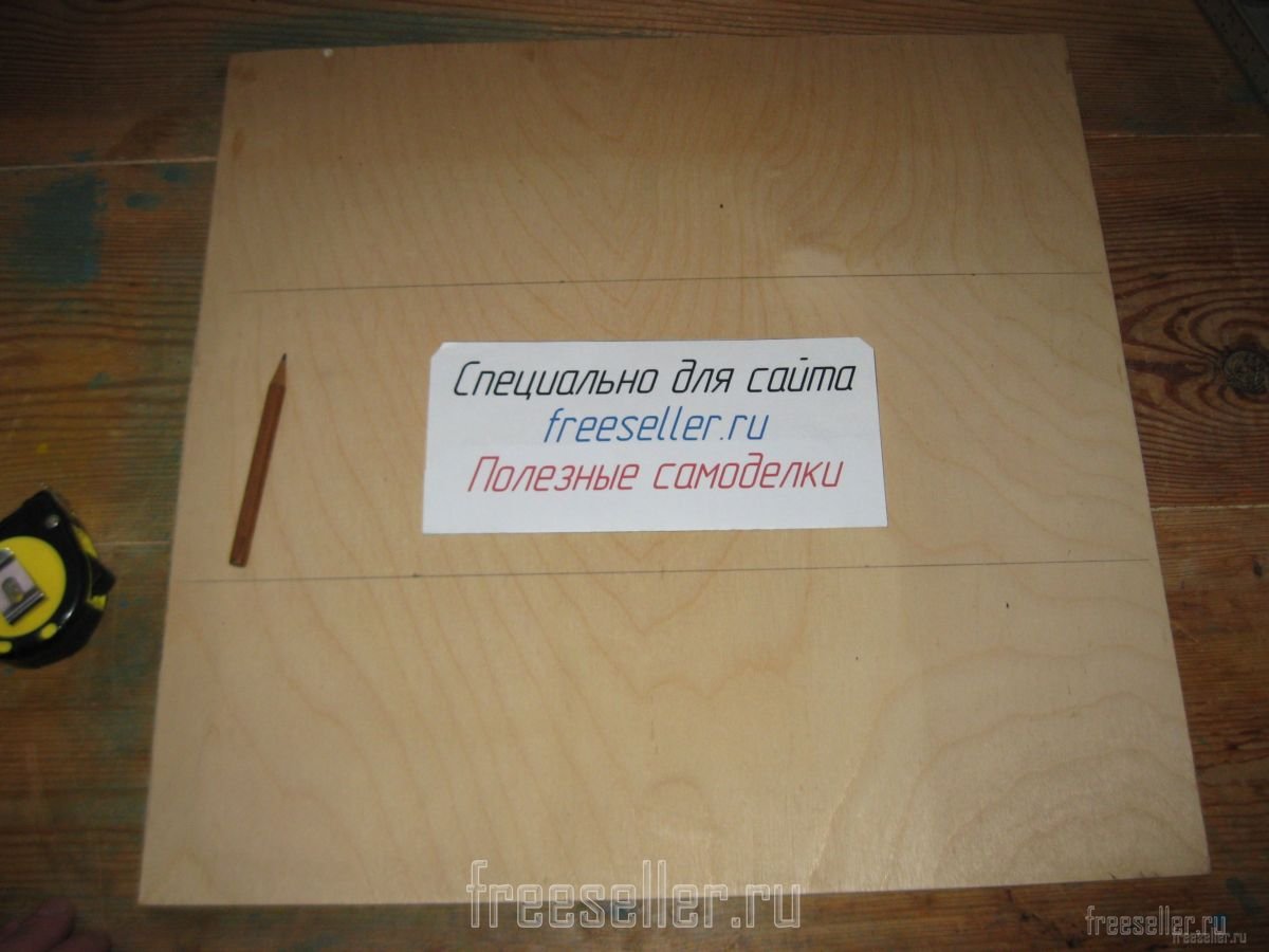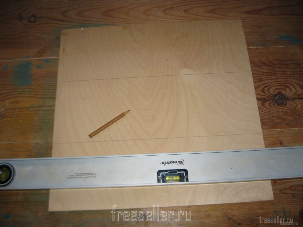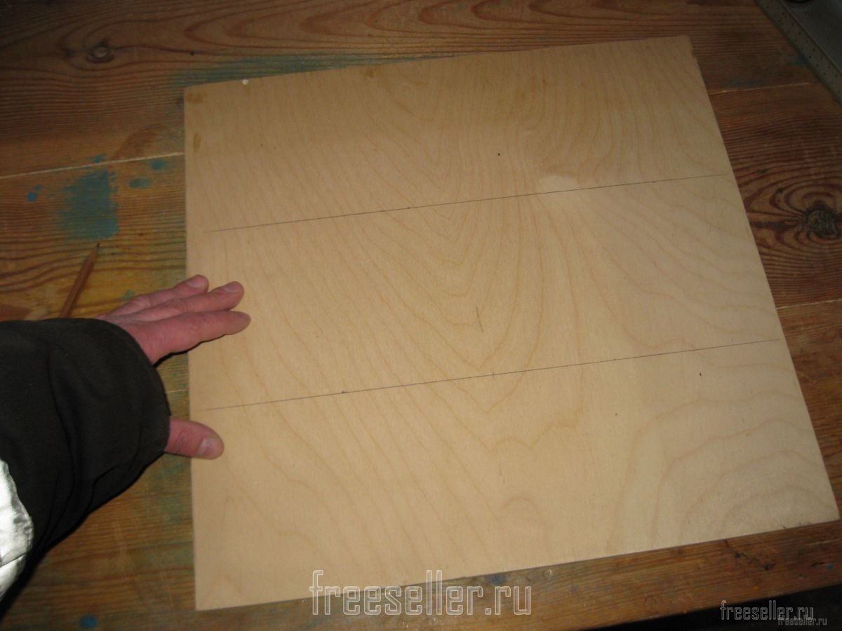 Соединяем эти точки линейкой, заодно расчерчивая наш лист фанеры на три равные части.