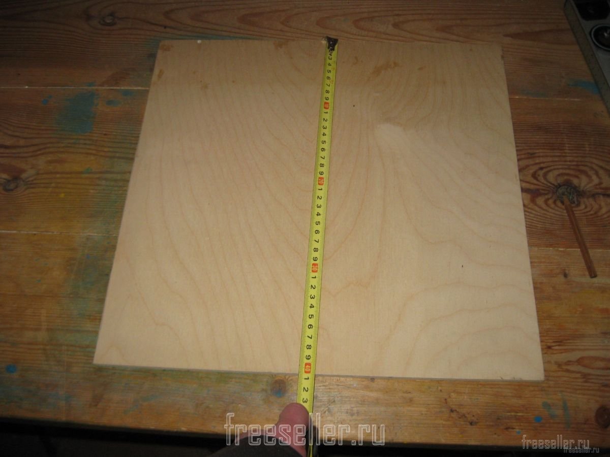 Поскольку, нам нужно разметить на наш лист на три равные части, то мы можем просто разделить его ширину на три. В результате, ширина каждой части будет равна: 40,8/3=13,6 см. Таким образом, мы можем просто взять рулетку и разметить лист фанеры, отмерив ширину каждой части.