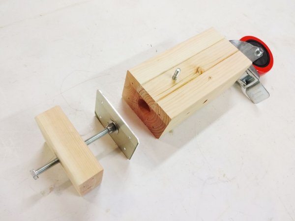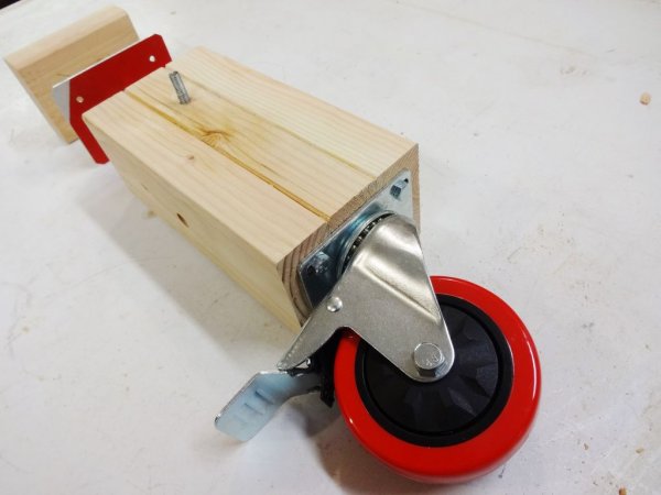 Прикручиваем опорное колесо к бруску с помощью винтов.