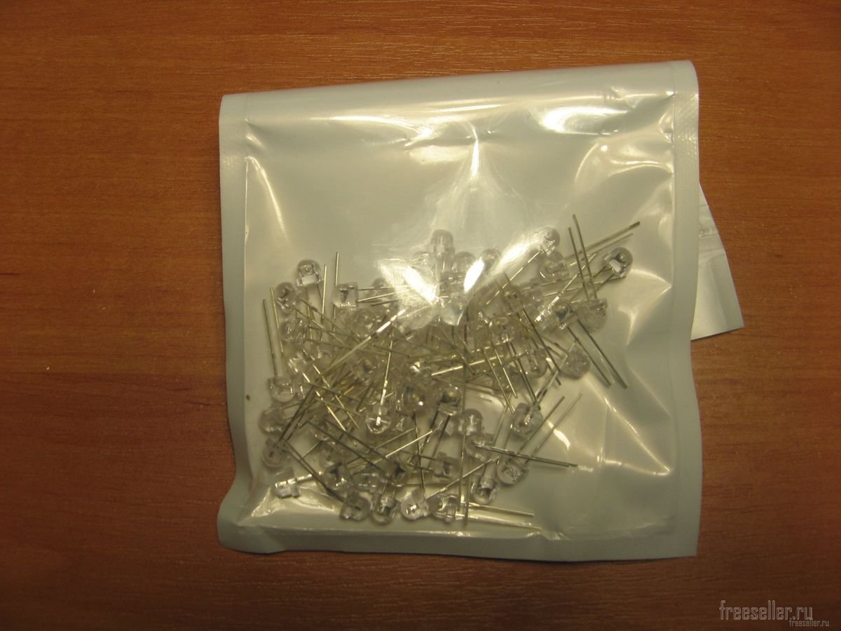 Светодиоды белого свечения, диаметра 5 мм, купленные в Китае за 1 доллар 100 штук.