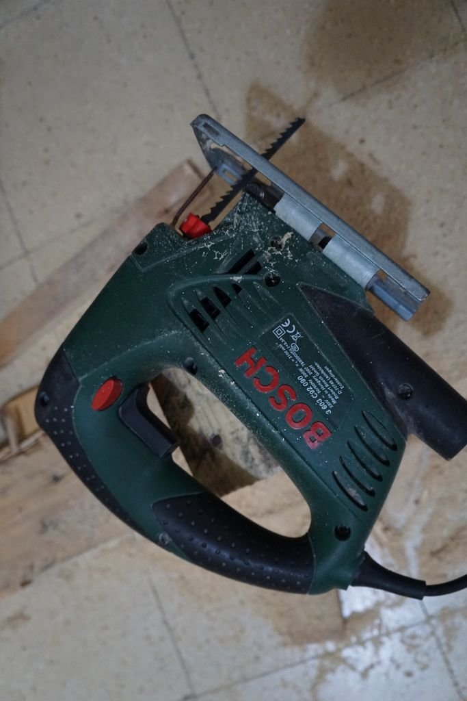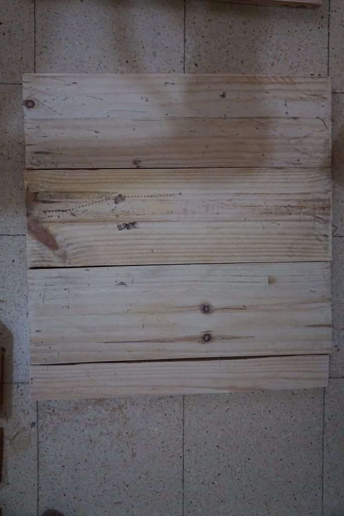 Размеры ящика 43 х 41 х 26 см, соответственно им выпиливаем доски из поддона: 4 доски длиной 41 см и 4 доски по 43 см.