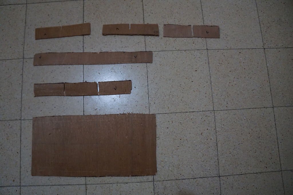 Для изготовления крышки вырезаем еще 5 штук длиной 43 см и 4 детали для тонкой рамки, к которой будут прибиты доски.