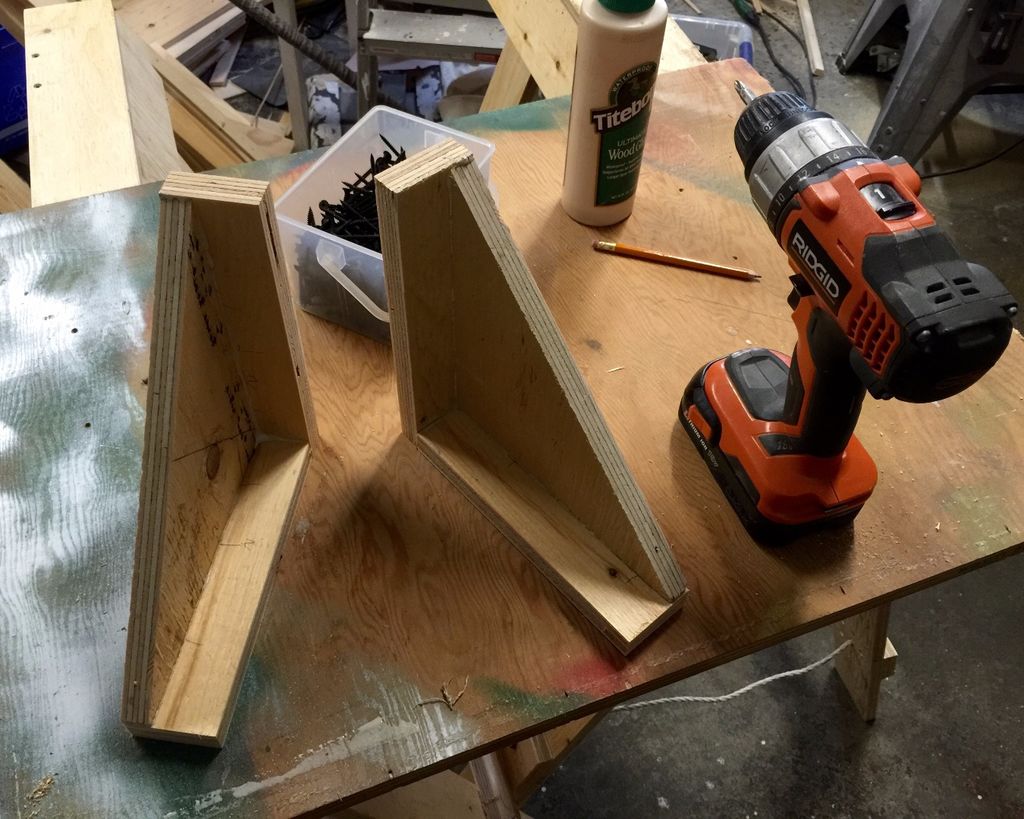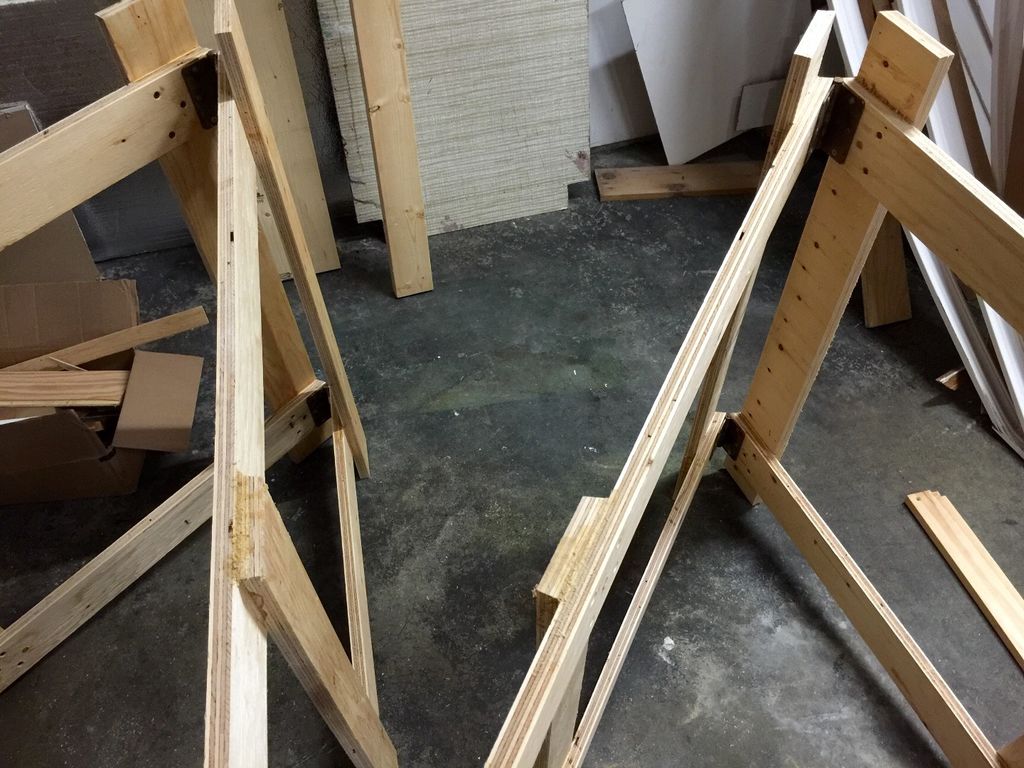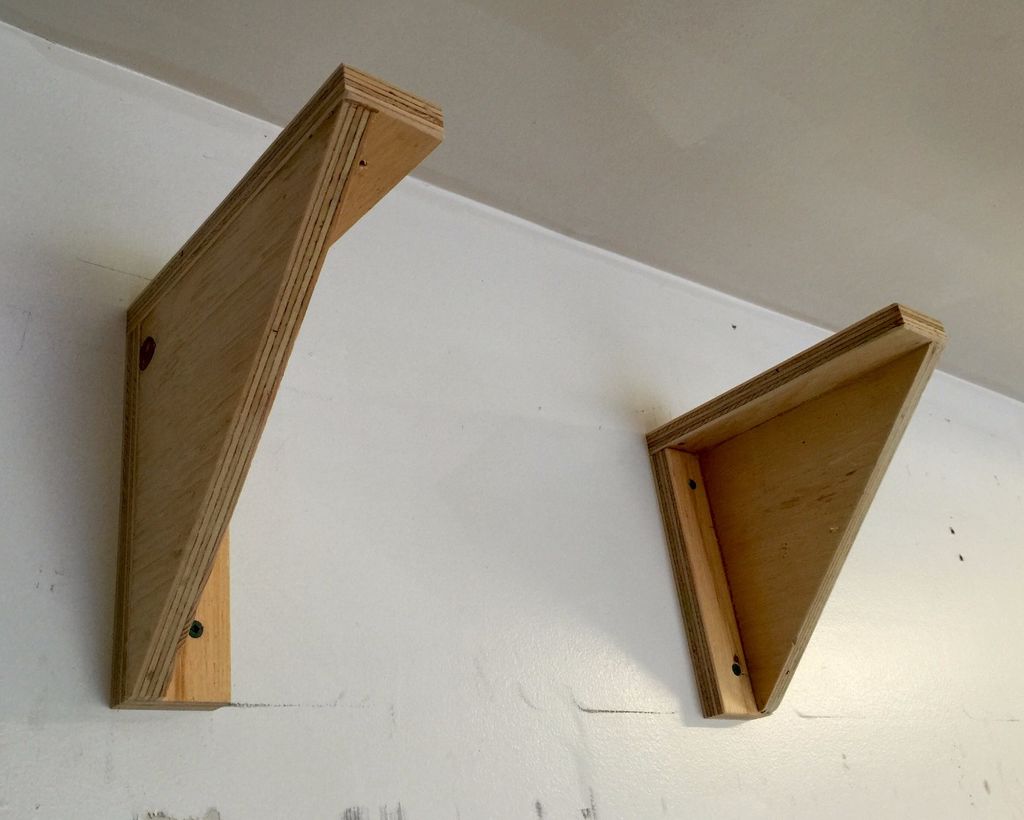 Также для удобного хранения парных козлов были придуманы простые крепления на стену. для этого из фанеры были вырезаны