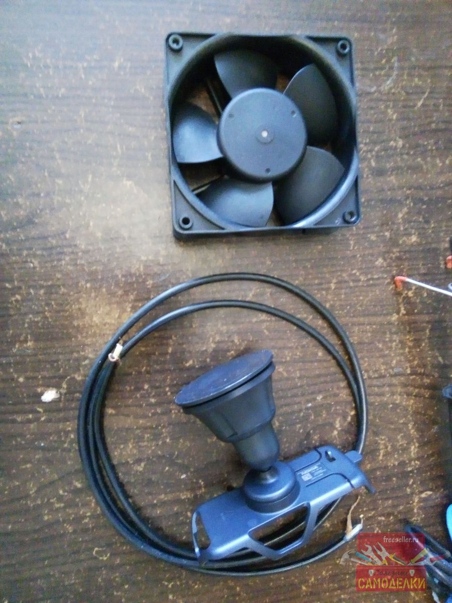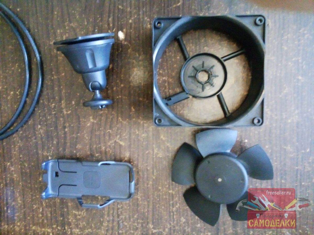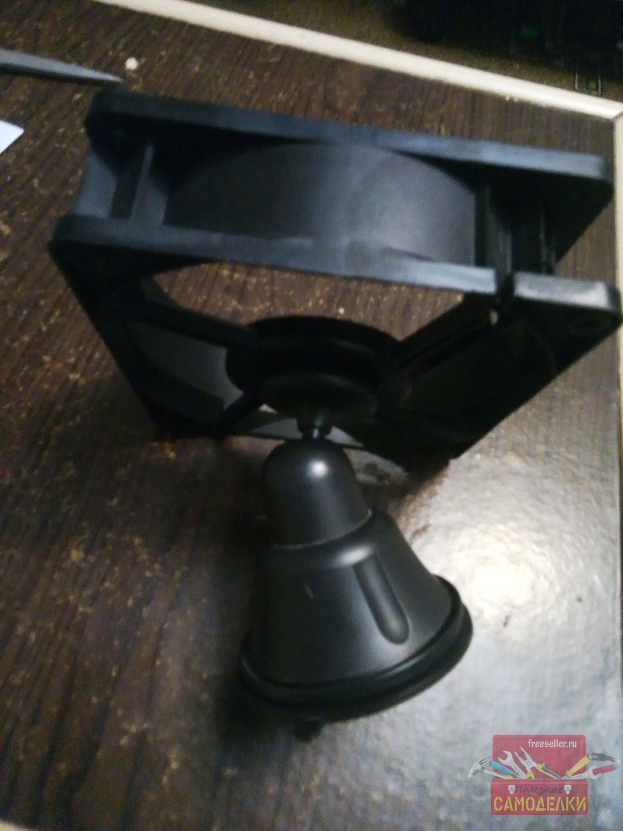 Универсальный кронштейн собрал из держателя для телефона с присоской и корпуса от сгоревшего вентилятора для охлаждения сварочного аппарата.