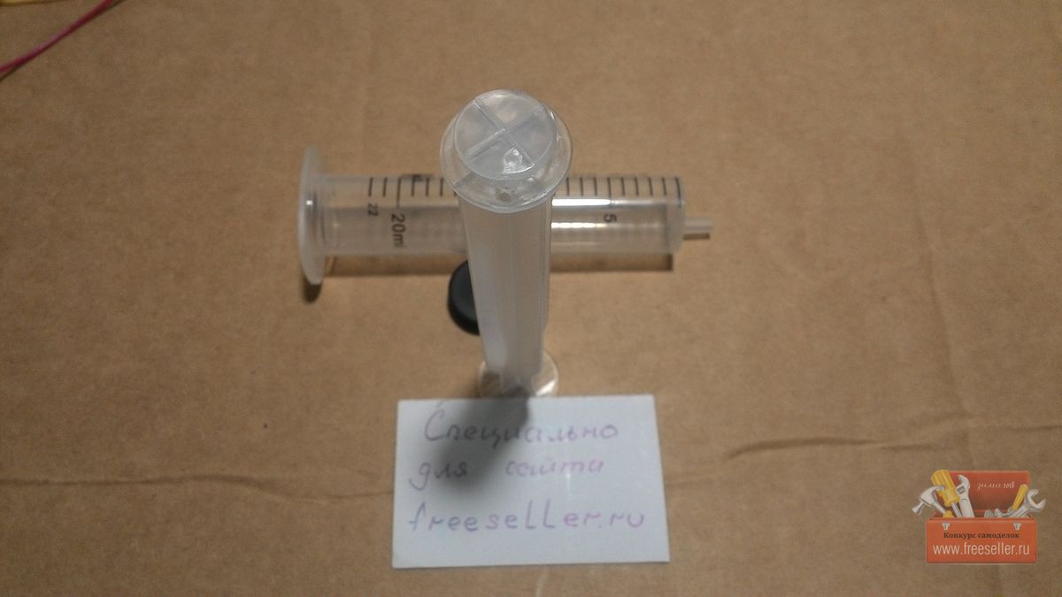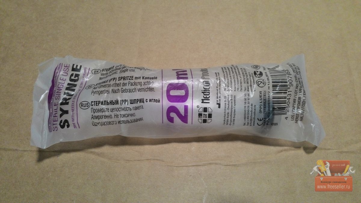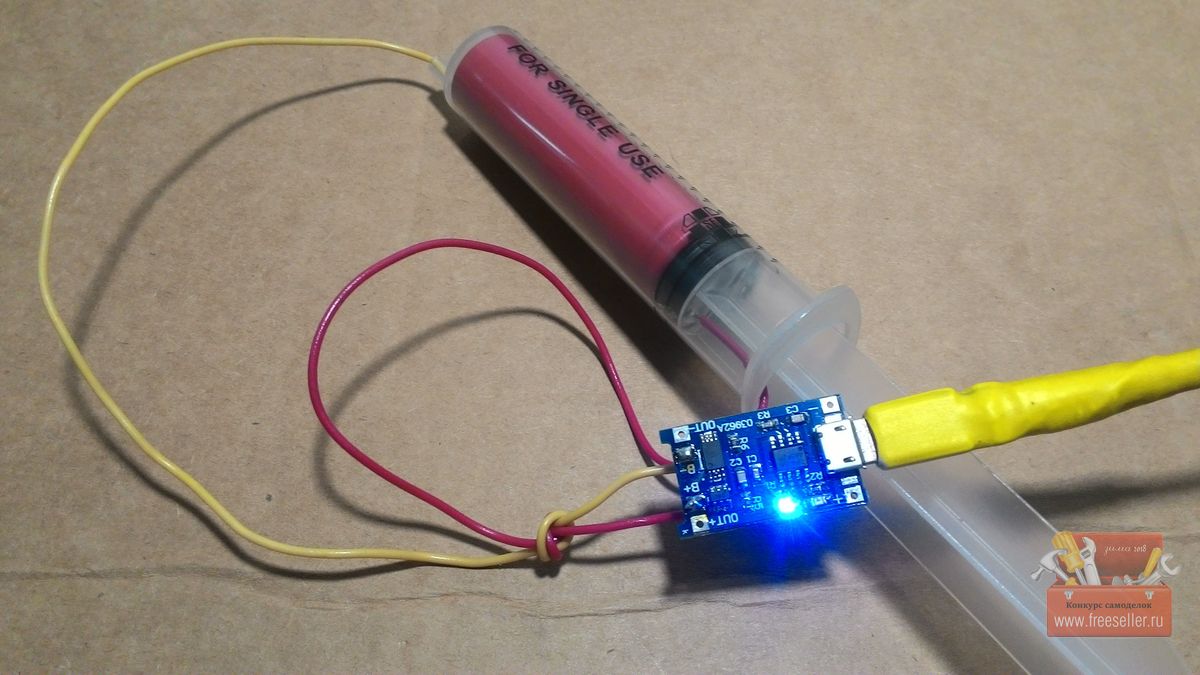 Шприц 20 мл очень хорошо подходит для одного аккумулятора 18650.