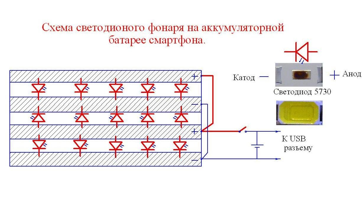 Делаем карманный фонарик на аккумулятор от смартфона и светодиодах SMD 5730. Как использовать аккумуляторы сотовых телефонов, смартфонов и планшетов в быту: для питания различных устройств, фонарей, игрушек, powerbank и т.д..