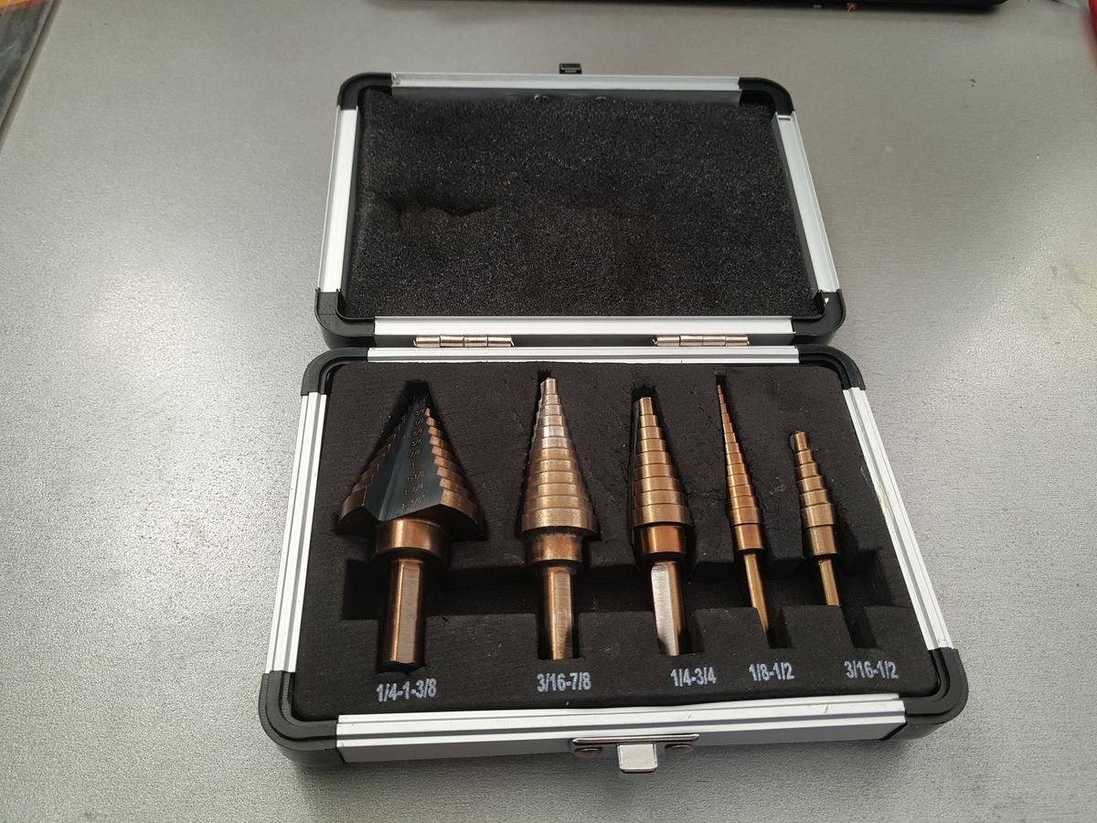 3) Набор ступенчатых сверл с покрытием из кобальта в специальной упаковке.