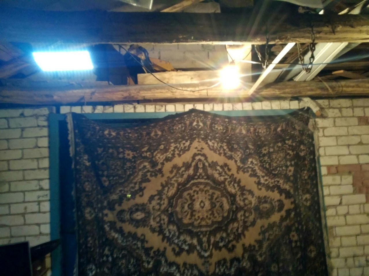 Вот так вот выглядит все это в гараже, к кулеру я прикрутил подвес для гипсокартона, а подвес на саморезы, что бы снять панель нужно не больше минуты).