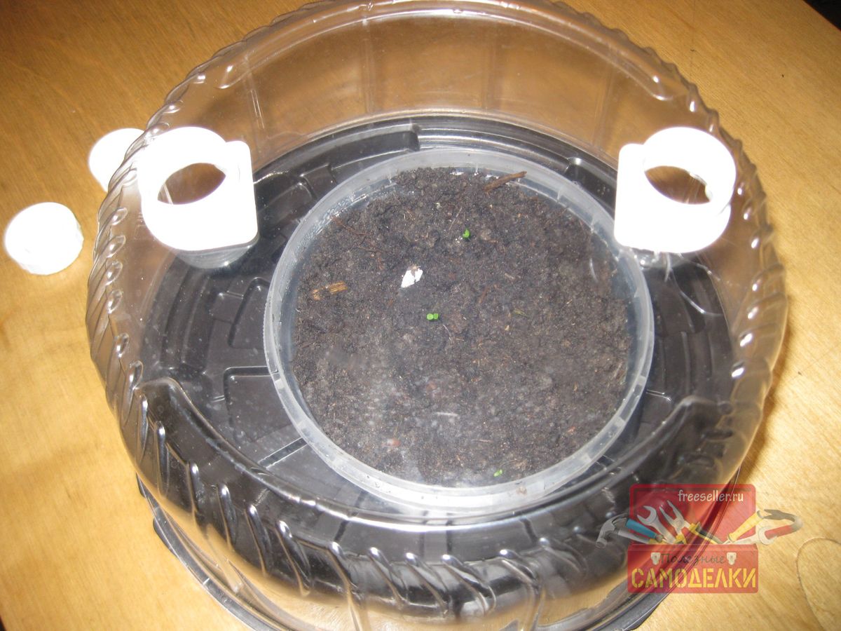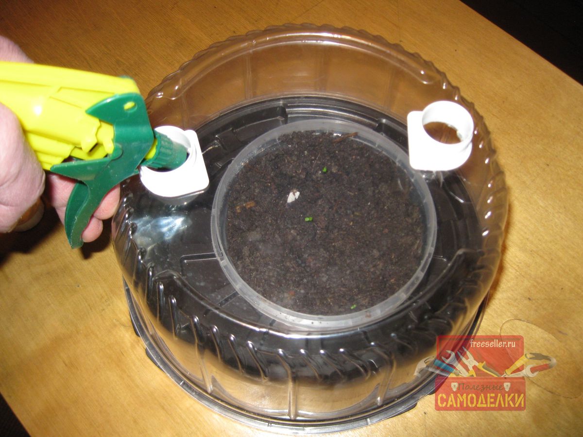 Однако, при использовании в качестве мини-парника, коробки от торта, есть одно существенное неудобство. Во-первых, высаженные семена, нужно периодически поливать или увлажнять землю при помощи пульверизатора. А во-вторых, когда семена начнут прорастать, мини-парник нужно будет также периодически проветривать.