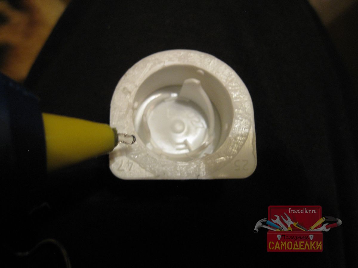 Теперь осталось только приклеить две резьбовых основы к ободкам сделанных отверстий.