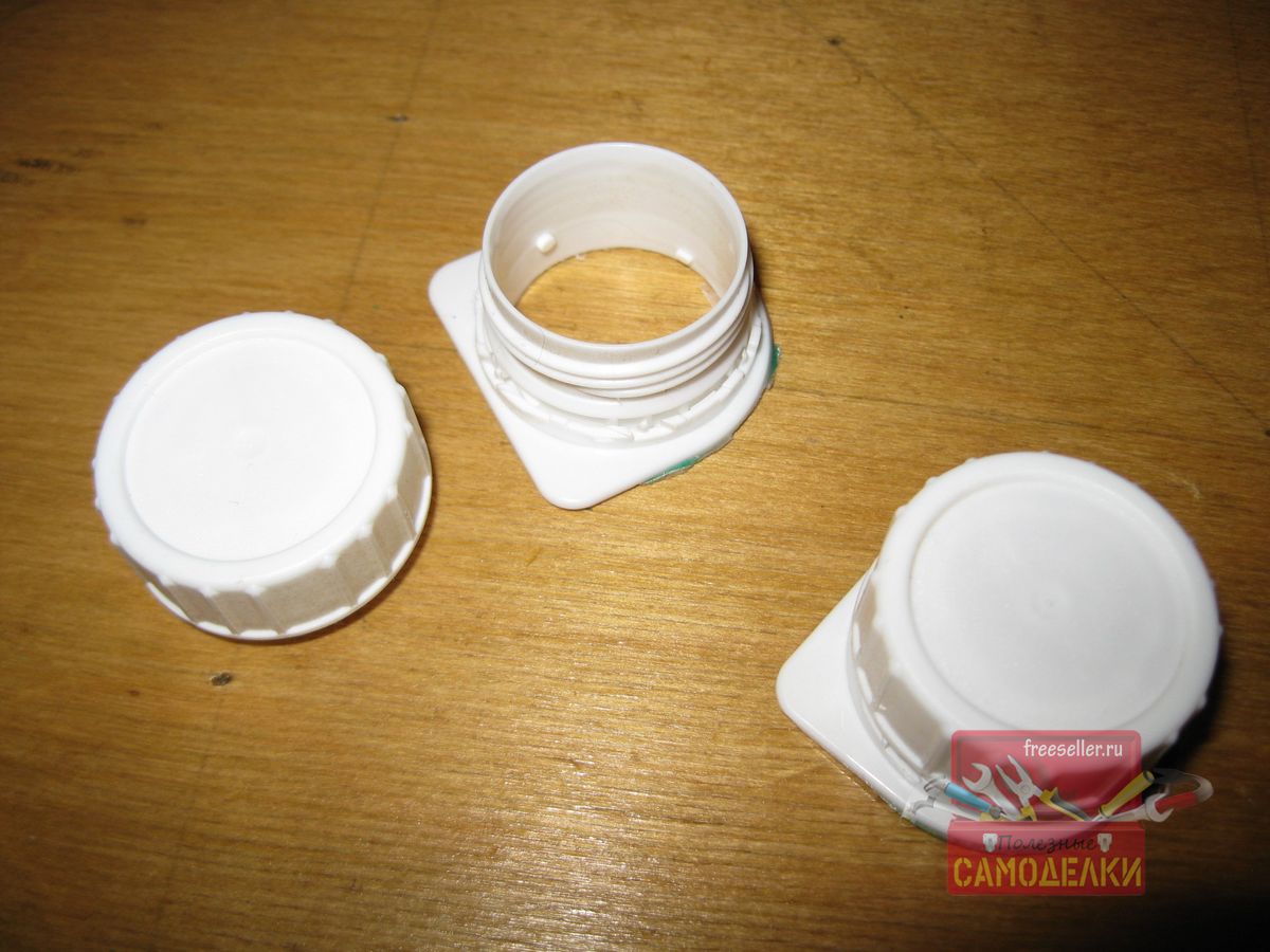Эти крышки легко отдираются от пакетов вместе с резьбовой основой.