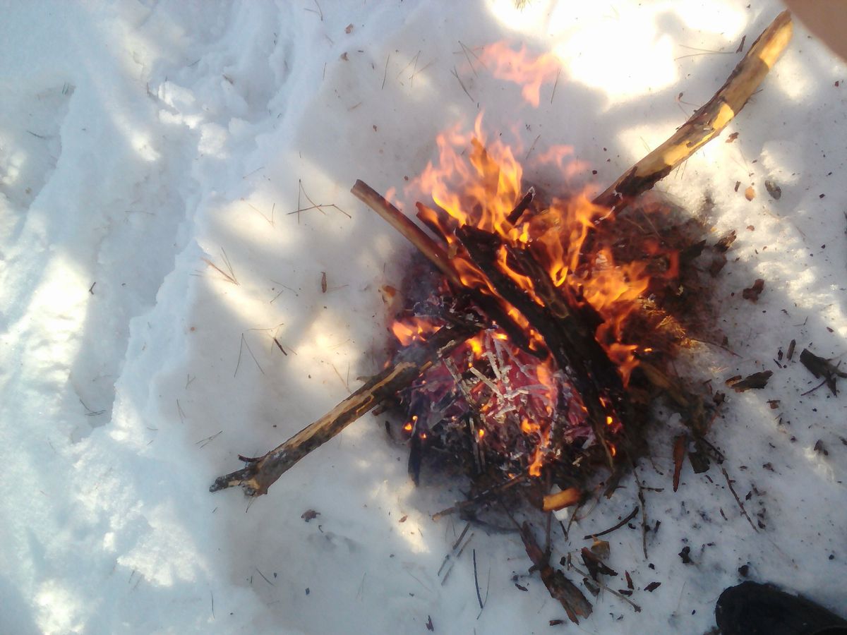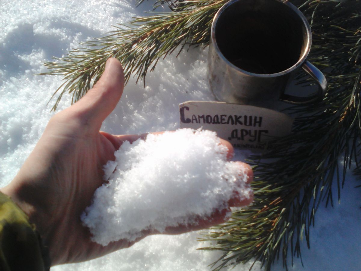Все предельно просто, собирается снег и растапливается в котелке или же кружке, доводим до кипения.![]()
