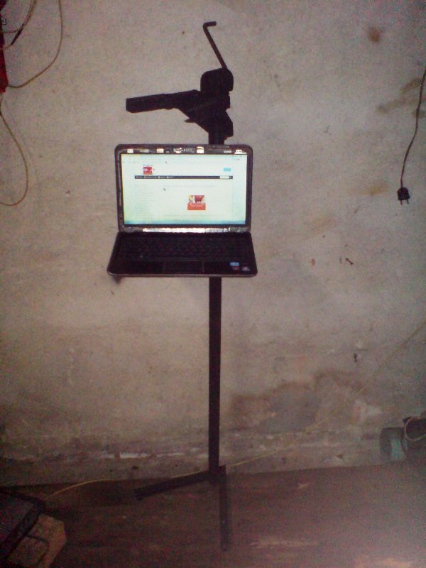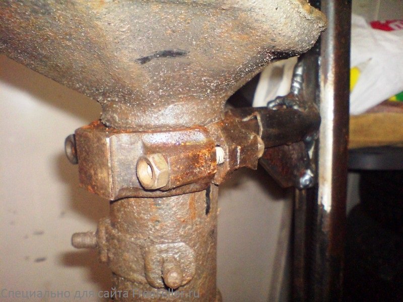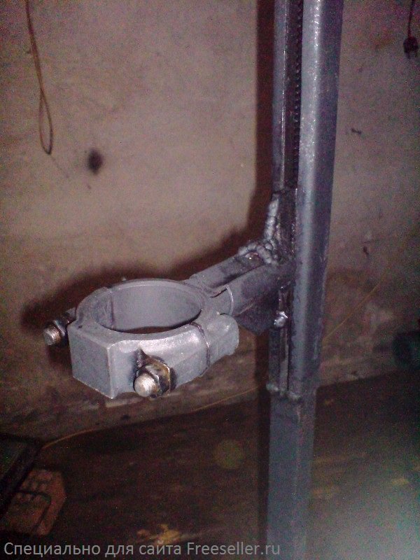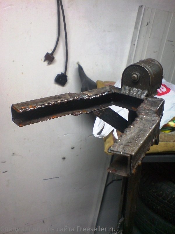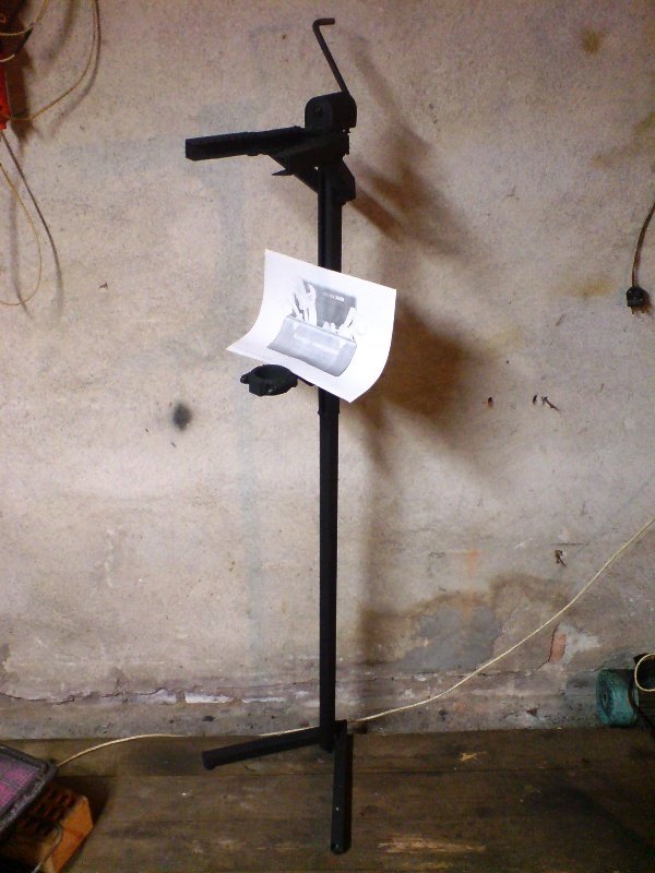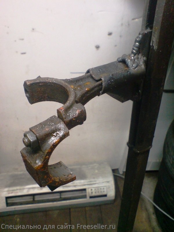 Отрезав от домкрата опорную пяту, удлинил домкрат и сделал две лапы. Получился полноценный стенд.