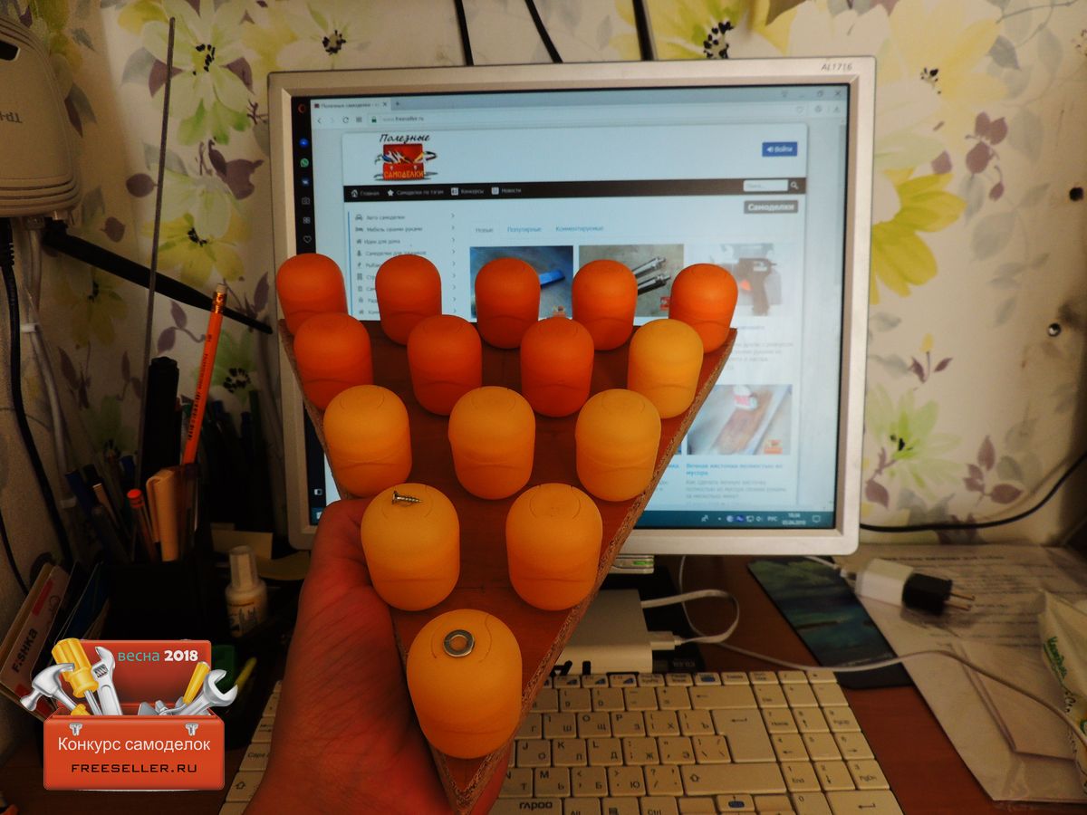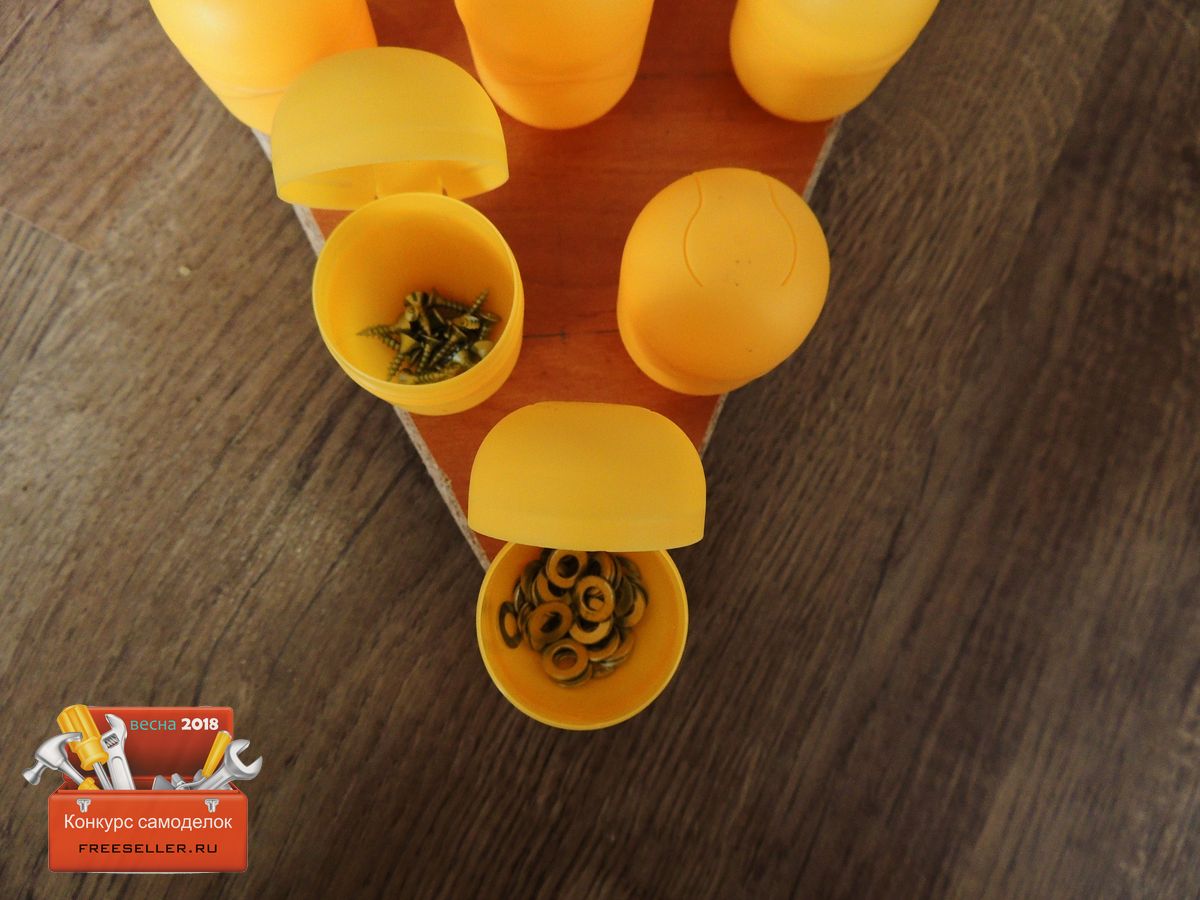 Теперь наполняем футляры нужными мелочами, в моем случае, это гайки, саморезы.![]()