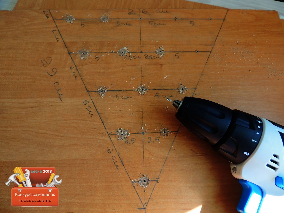 Когда разметка была нанесена принялся сверлить отверстия под саморезы.![]()
