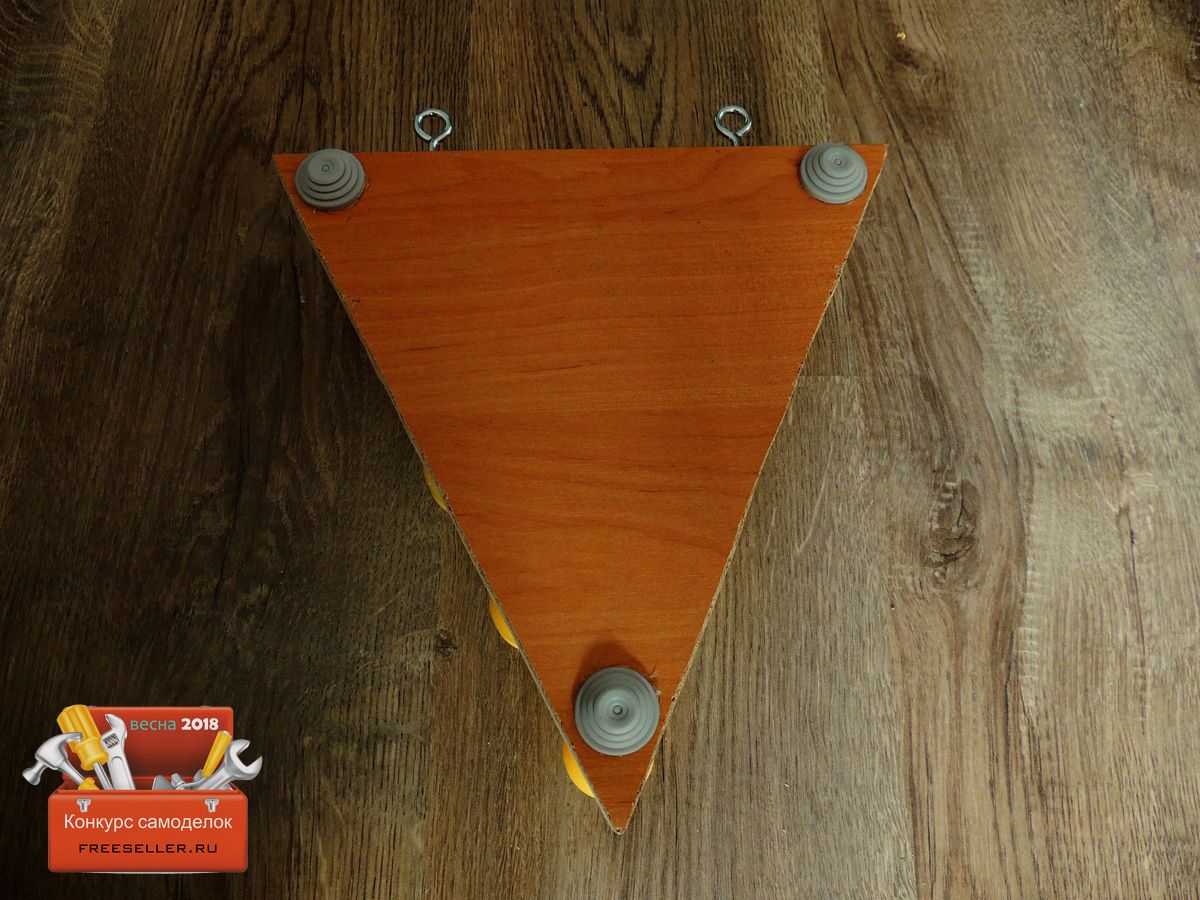 Для того, чтобы ДСП не скользило на поверхности стола, добавил три резиновых ножки, их взял из ненужной распределительной коробки, приклеил при помощи клеевого пистолета.![]()