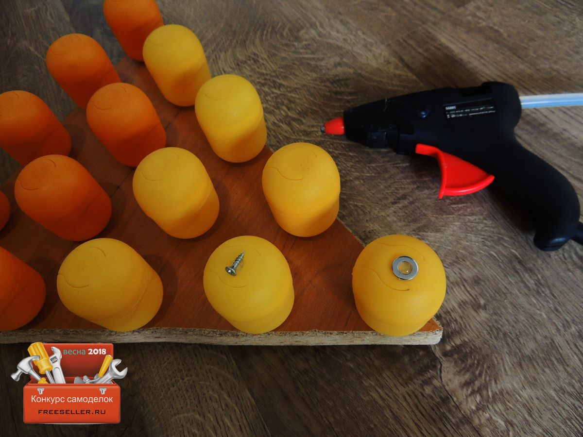 А для того, чтобы визуально было понятно, что где находится, на верхний колпачок я нанес термоклей, и зафиксировал элемент на поверхности.![]()
