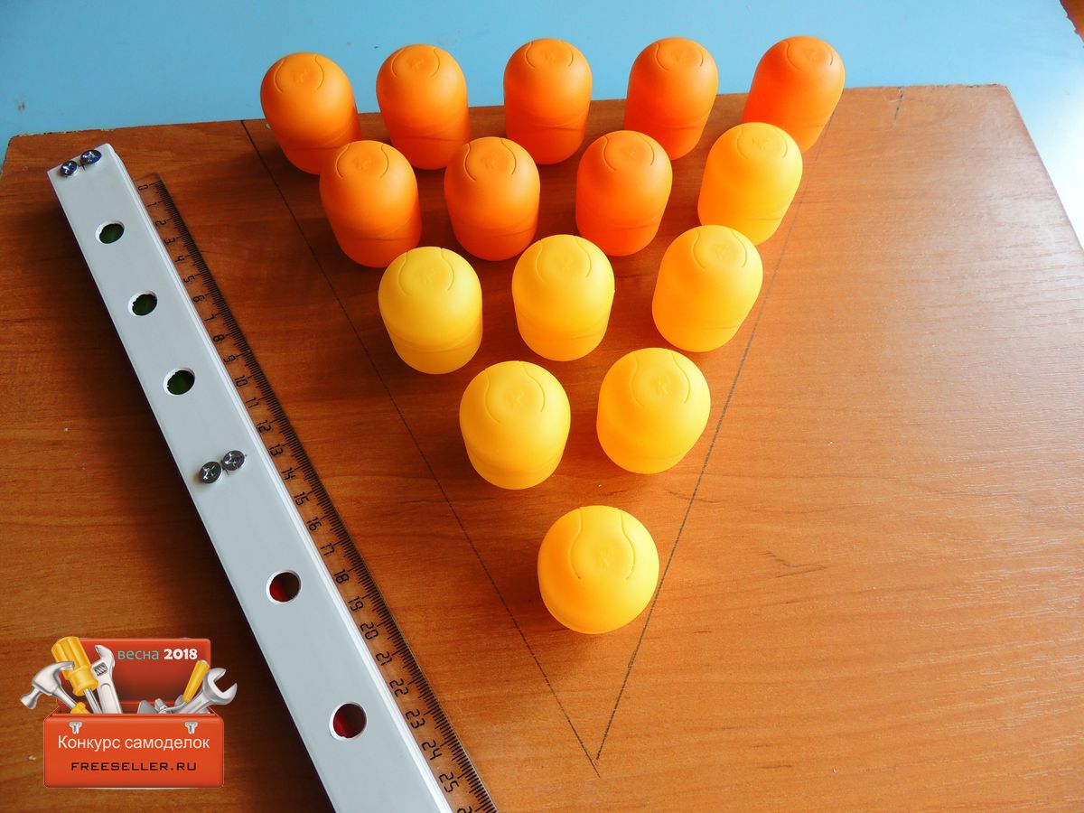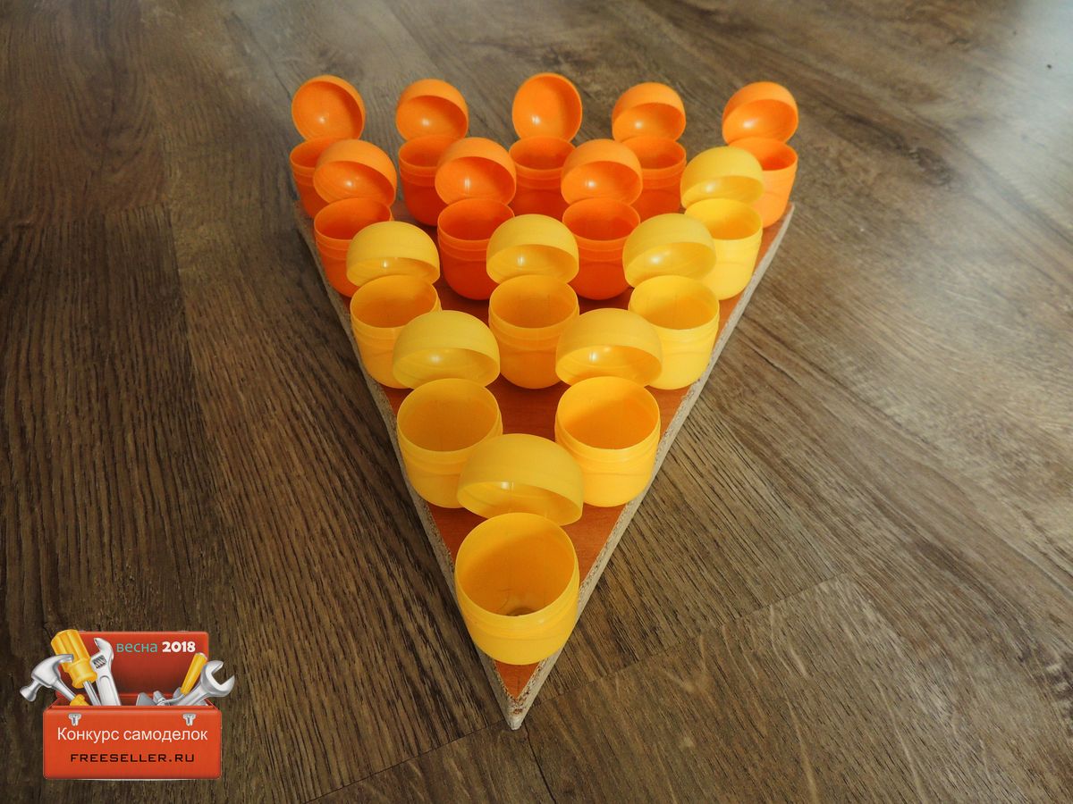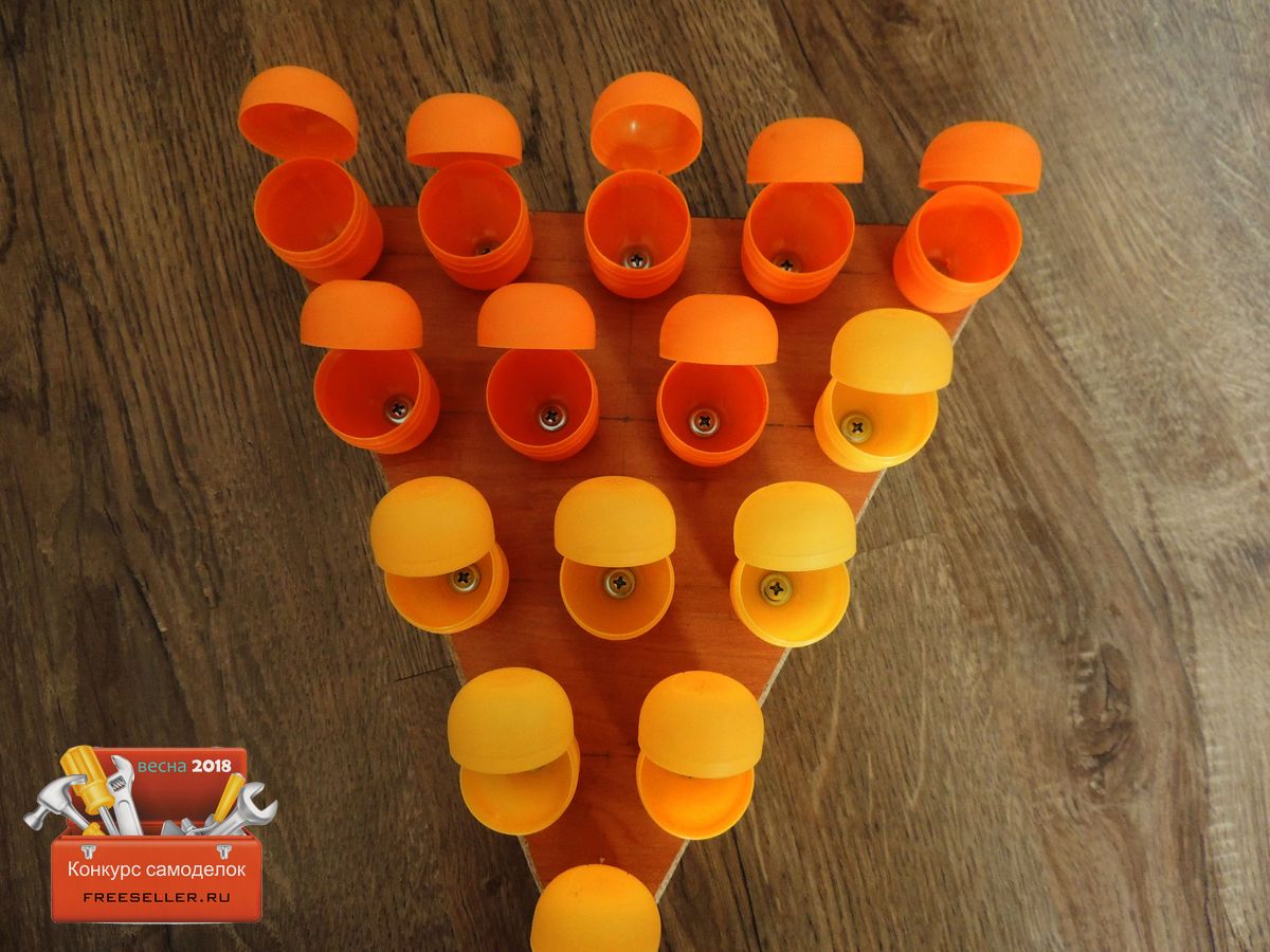 Когда все готово, выкладываем футляры на поверхность ДСП. Я решил выложить их в форме треугольника, так как мне показалось, что так будет оригинально, и удобно. Выкладывал все на глаз, чтобы примерно увидеть, как все будет.![]()