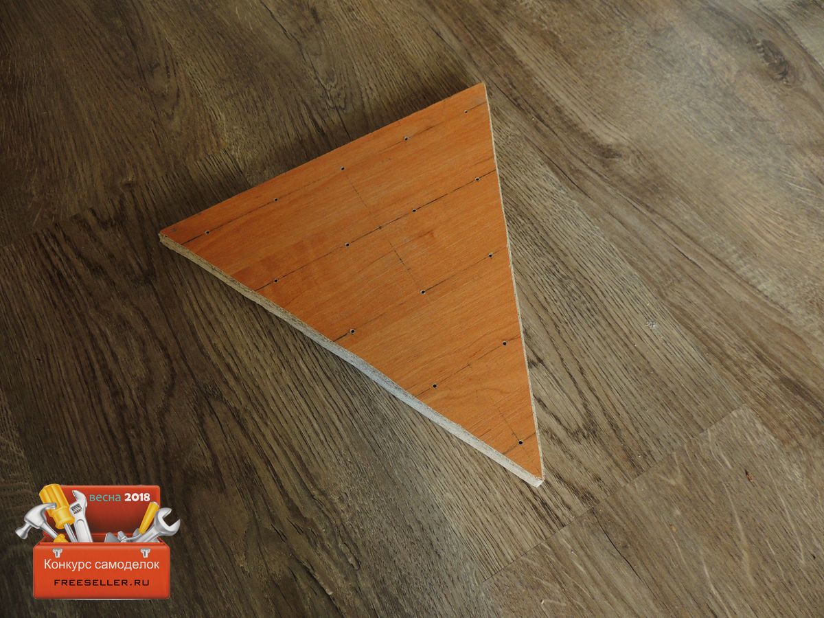 Далее при помощи лобзика по расчерченному контуру вырезал треугольник.![]()