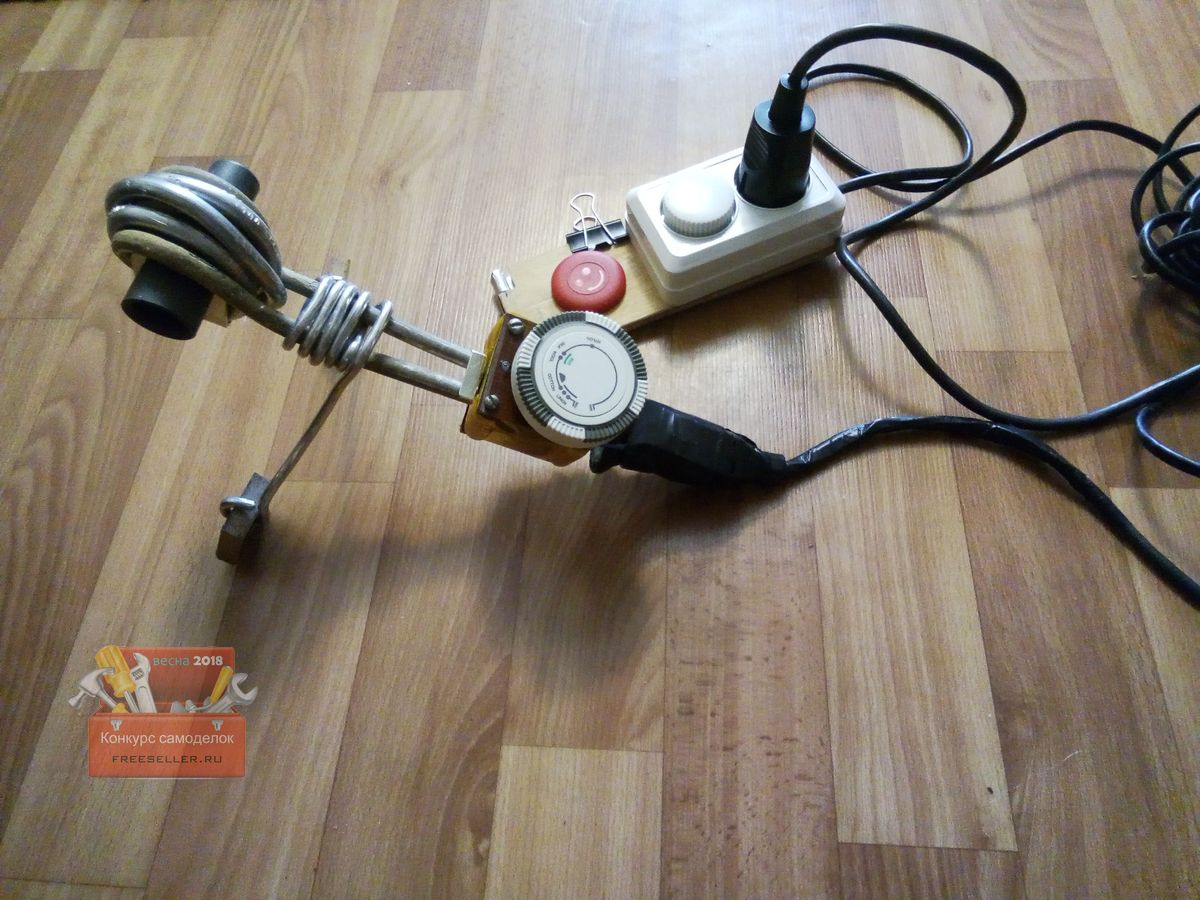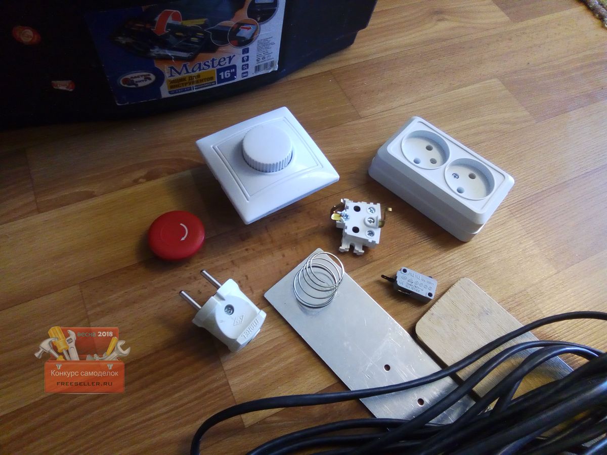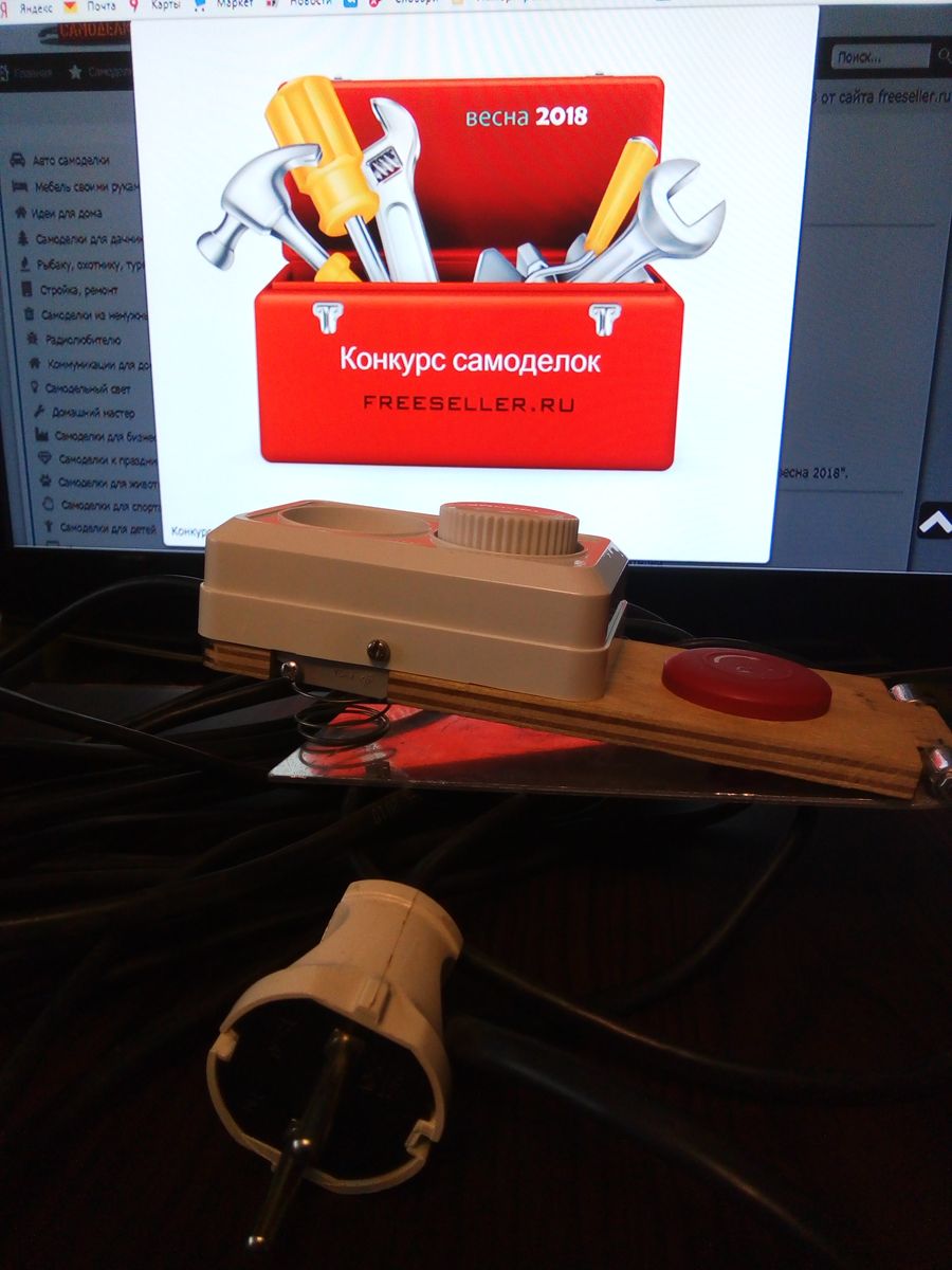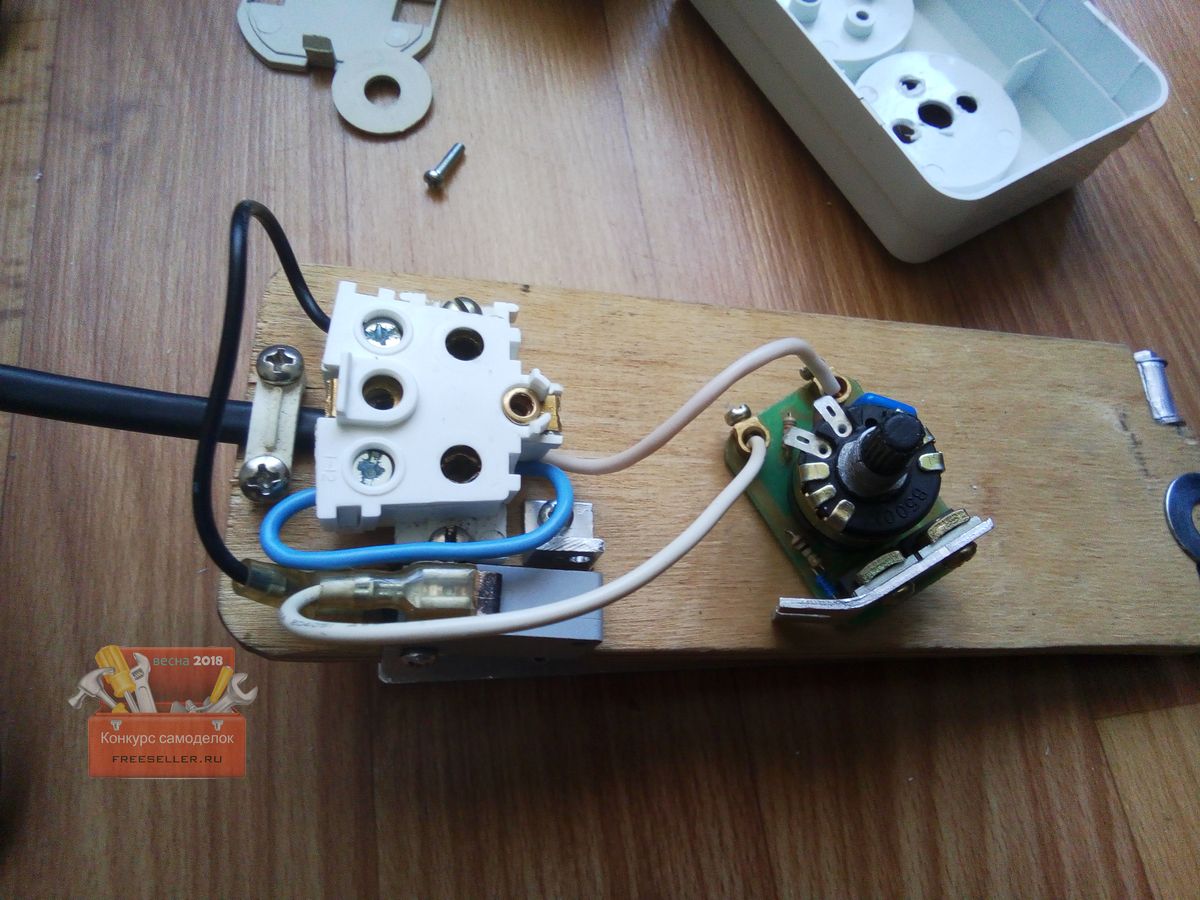 Как раз получилась необходимая вещь для другой моей самоделки - паяльника для полипропиленовых труб - . Если просто зафиксировать педаль в нажатом состоянии с помощью канцелярского зажима, то работает только функция диммера.