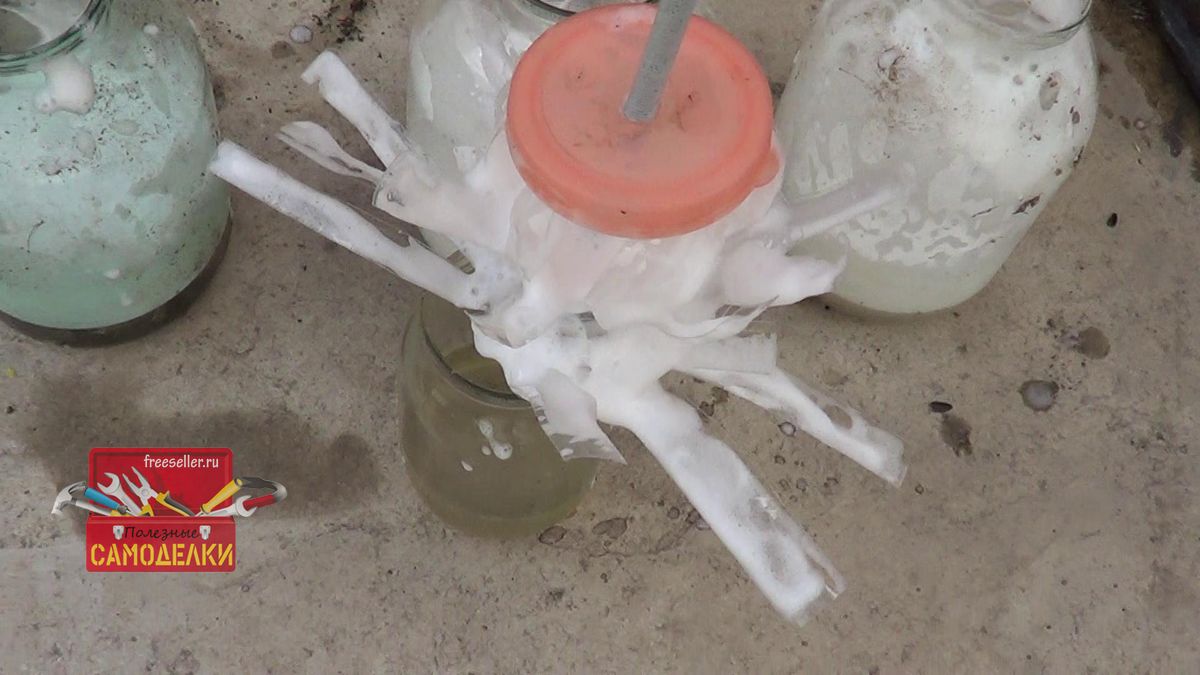 Ну а теперь самое интересное, это испытание самоделки! Наливаем в каждую банку немного воды, добавляем моющего средства, вставляем шпильку в шуруповерт, а ершик из бутылки в банку, закрываем крышку и начинаем мыть.