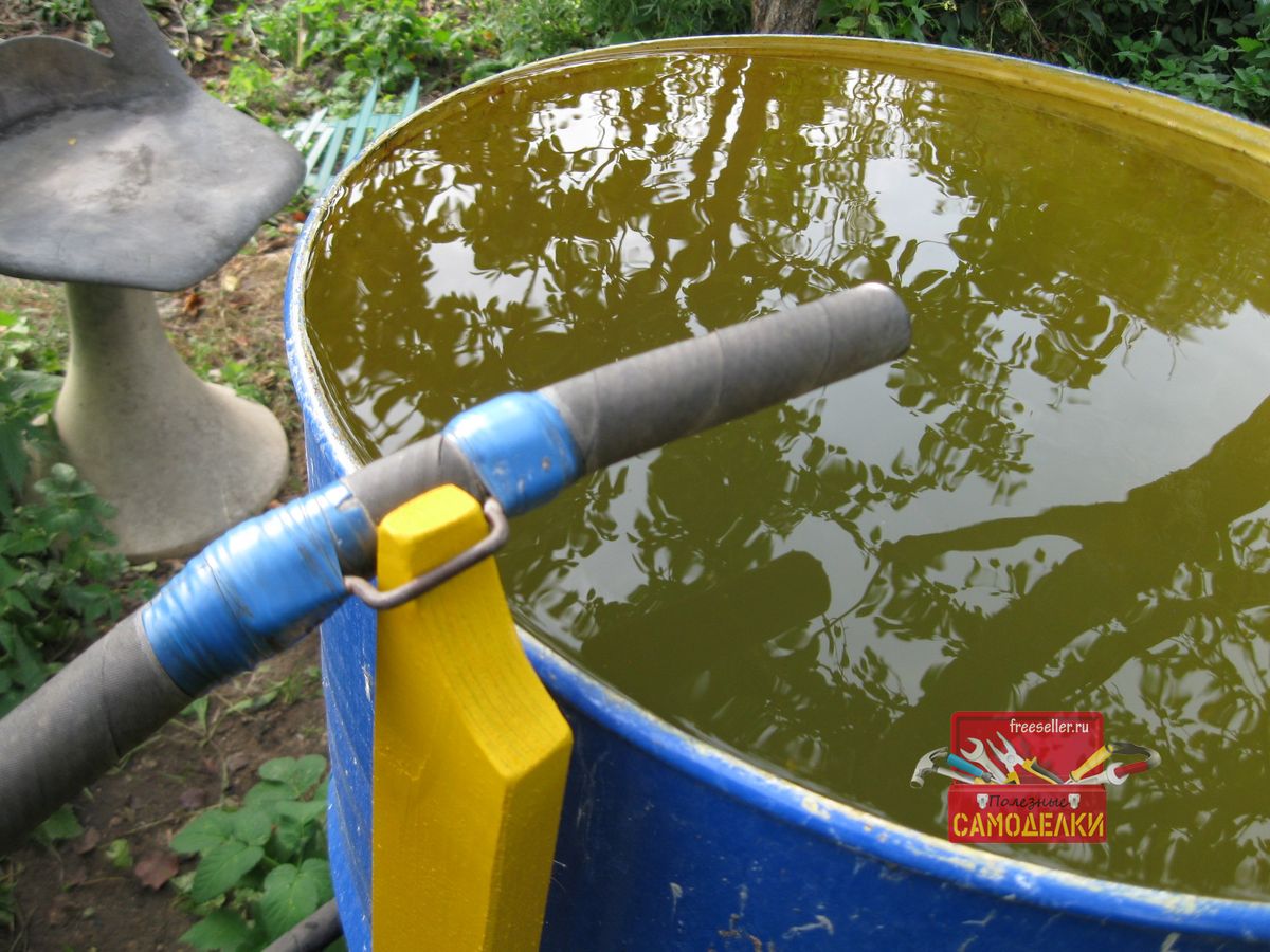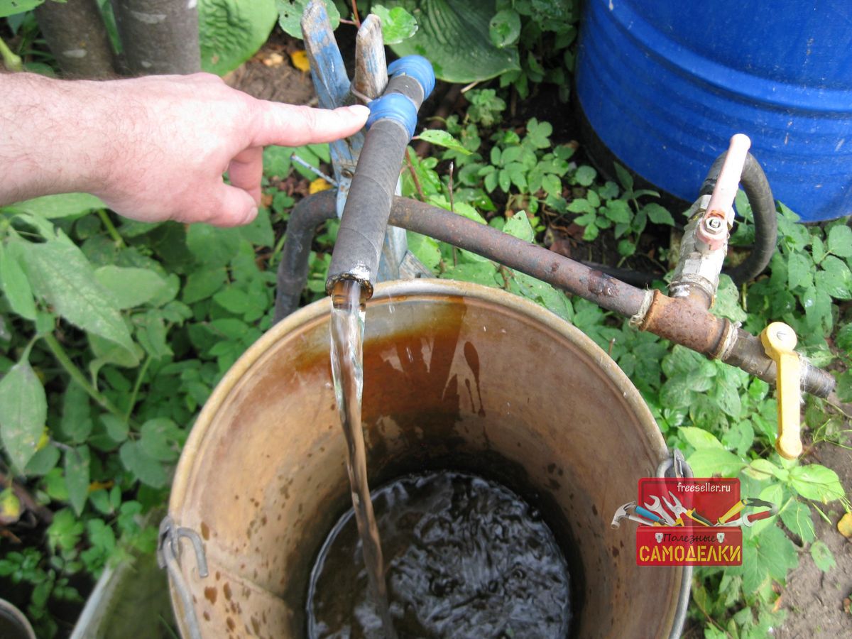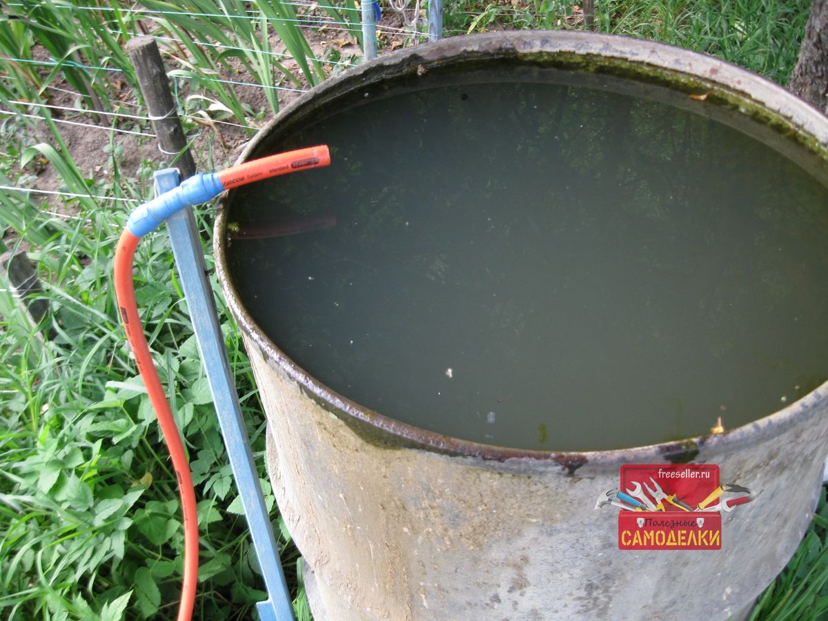 Для решения этой проблемы, конец шланга, опущенный в бочку, часто прижимают какими-нибудь досками или же просто опускают его поглубже до самого дна бочки. Однако такие меры зачастую весьма неудобны, да и не дают полной гарантии, что шланг не выскочит из бочки.