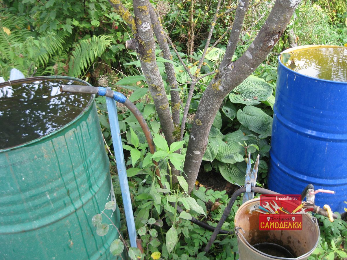 Кстати, у меня, теперь, получилось так, что поскольку две бочки, старая и новая стоят недалеко друг от друга, то наливать их можно одним и тем же шлангом, просто перекидывая его с одного держателя на другой, что весьма удобно.
