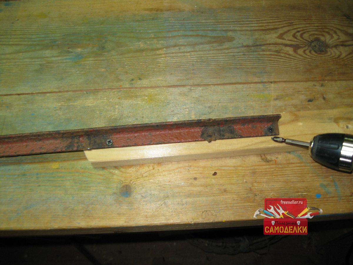 Теперь остается прикрутить уголок шурупами к нижней части дощечки.