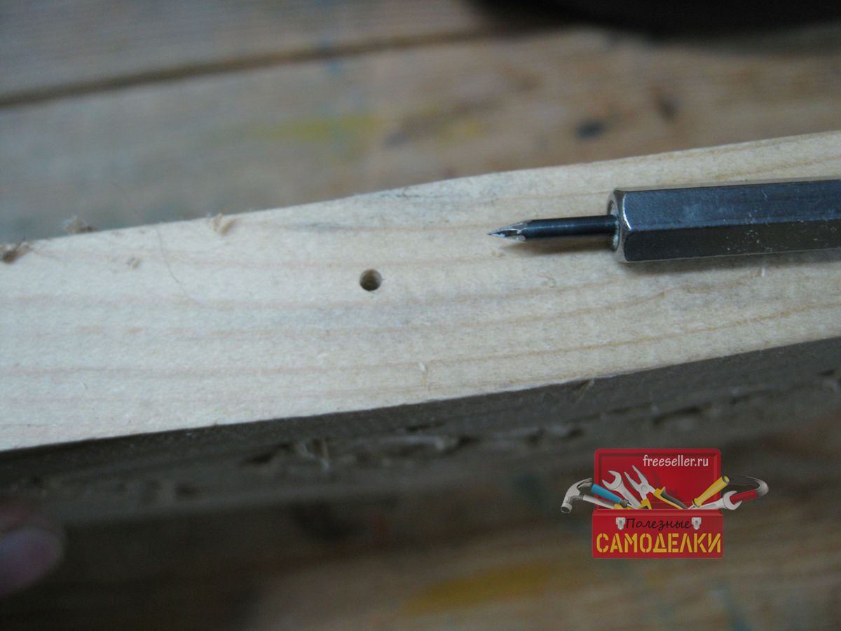 Правда, строго говоря, это нельзя назвать сверлением, поскольку у такого шила нет режущих кромок, и при сверлении не образуется стружка. Поэтому правильнее назвать такой процесс протыканием древесины.