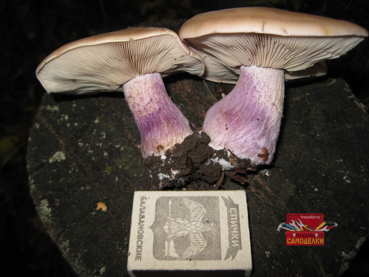 Как называются эти грибы, я точно не знаю, но предполагаю, что это грибы из семейства рядовок (возможно «рядовки фиолетовые»). Кстати снизу их ножки действительно имеют фиолетовый цвет.
