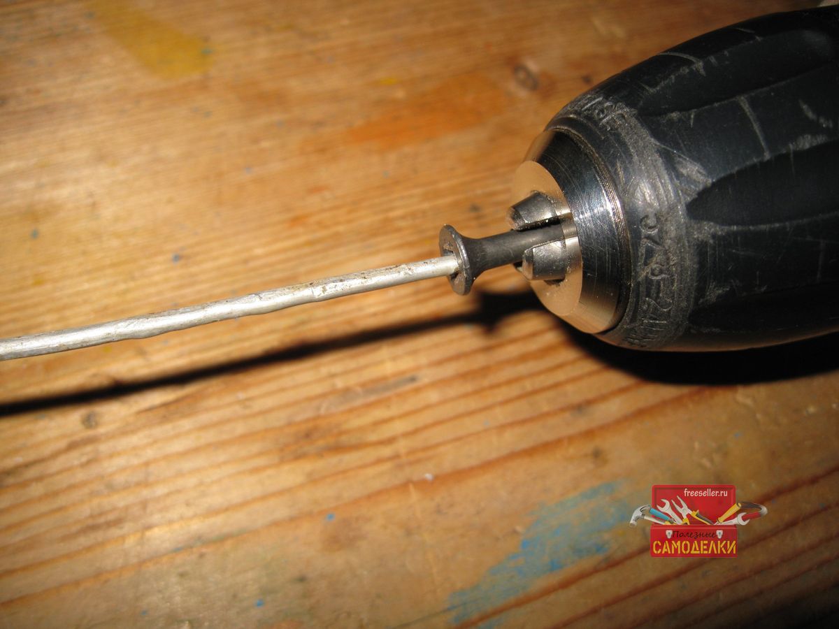 Сначала я слегка выпрямил отрезки проволоки и скруглил у них концы при помощи самодельного приспособления (смотри об этом мою статью «Простое приспособление для скругления концов проволоки»).![]()