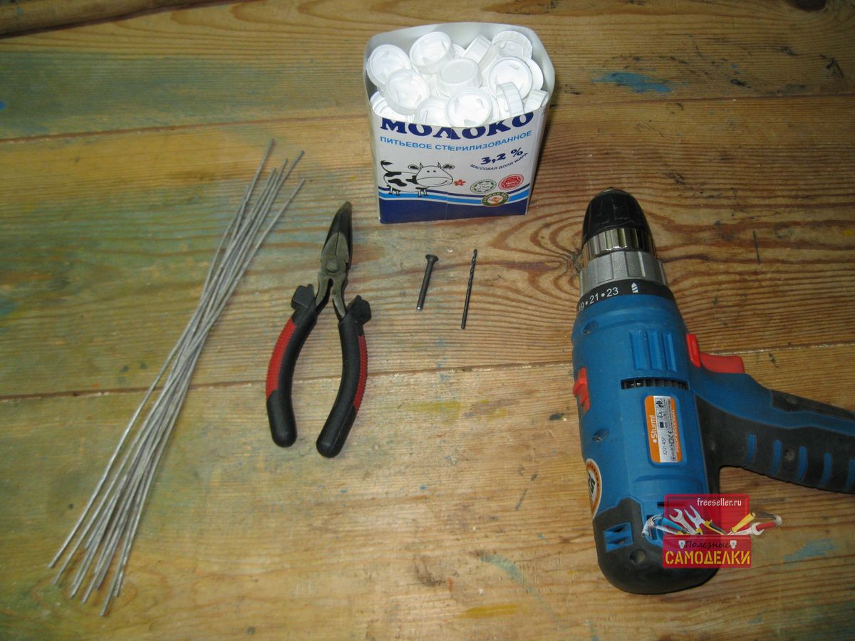 Основания этих колышков я сделаю из прочной нержавеющей проволоки, а сами метки из белых пластиковых крышек от картонных молочных пакетов, которых у меня накопилось достаточно много.