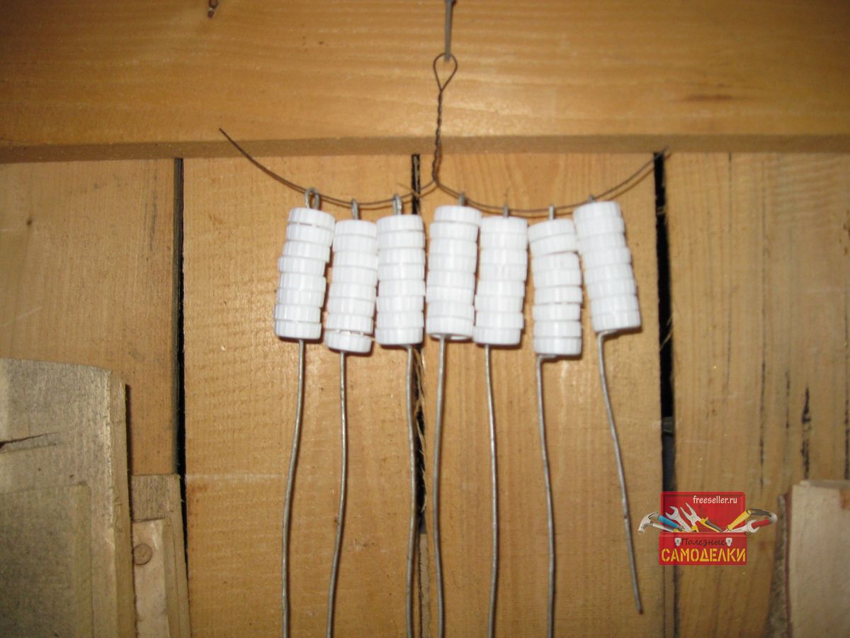 На каждый отрезок проволоки я надел по восемь крышек.![]()