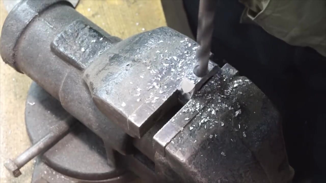 Дальше берём заточенный кусок сверла и вставляем его внутрь гайки, после чего вкручиваем болт. Желательно использовать болт с твёрдостью не менее 8,8 единиц, так ваше устройство прослужит гораздо дольше.