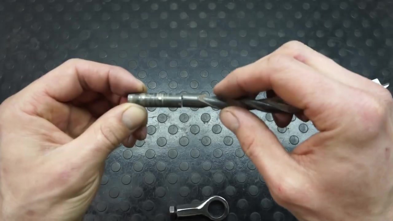 Теперь чтобы изготовить колущий элемент нашему гайкоколу, мы используем кусок хвостовика от сверла 10 мм. Отрезаем кусок сверла длинной 35 мм, и затачиваем его с обеих сторон как зубило.
